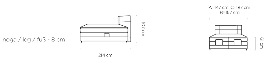 Už na první pohled zaujme elegantním čelem s precizním prošíváním, které dodává celé posteli luxusní charakter. Skutečný zážitek ale přichází ve chvíli, kdy si lehnete. Díky elektrickému polohování si můžete každou stranu postele nastavit přesně tak, jak vám to vyhovuje – ať už relaxujete, čtete knihu nebo sledujete televizi.