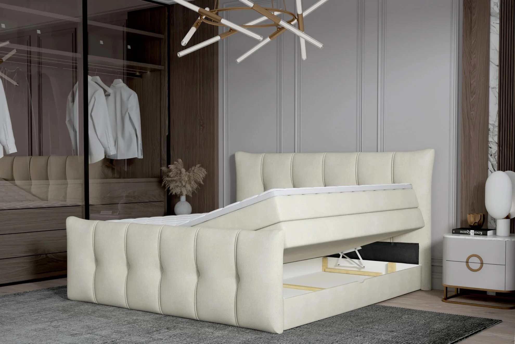 Boxspring postel SOFIA 160×200 – komfortní postel s úložným prostorem
