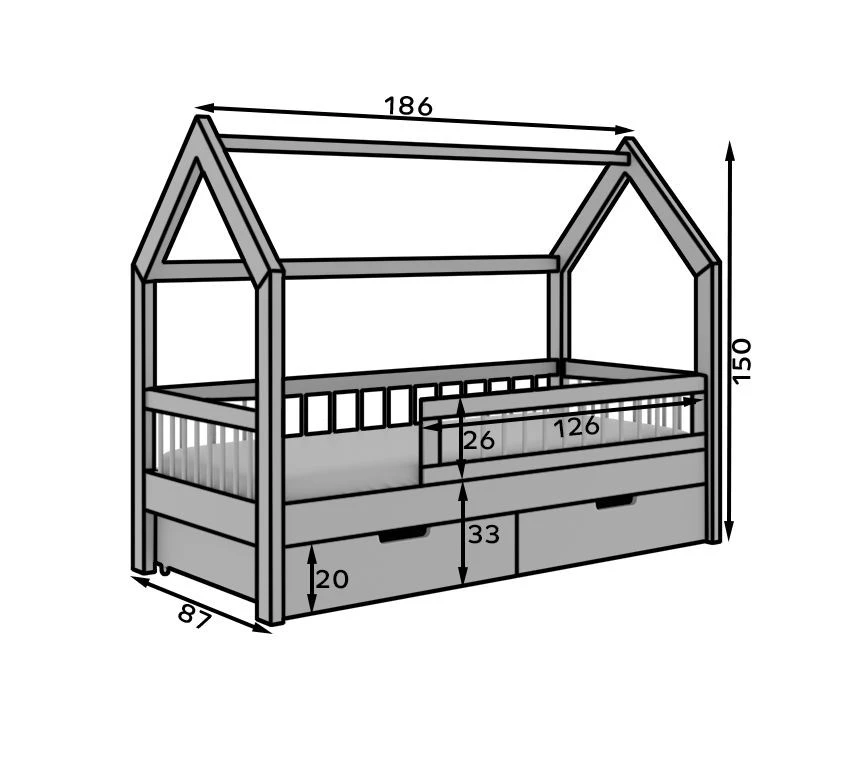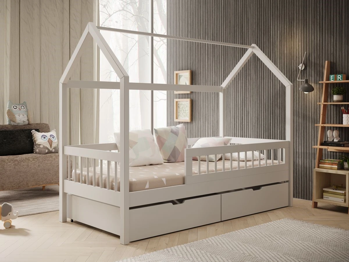 Rám postele je vyroben ze dřeva, zatímco zbytek tvoří odolná laminovaná deska. Součástí balení je pohodlný matrac. Postel je dostupná ve více barevných variantách, takže snadno zapadne do každého dětského pokoje.