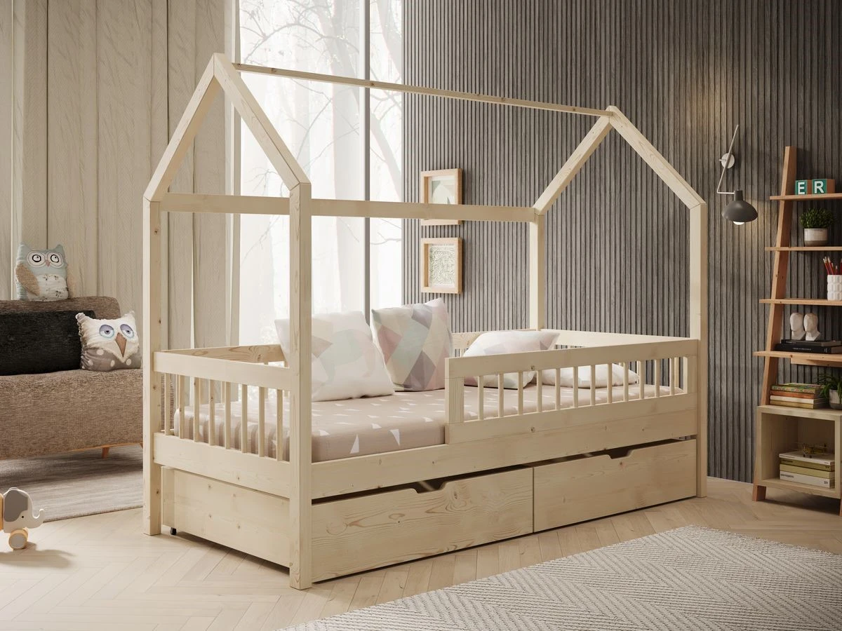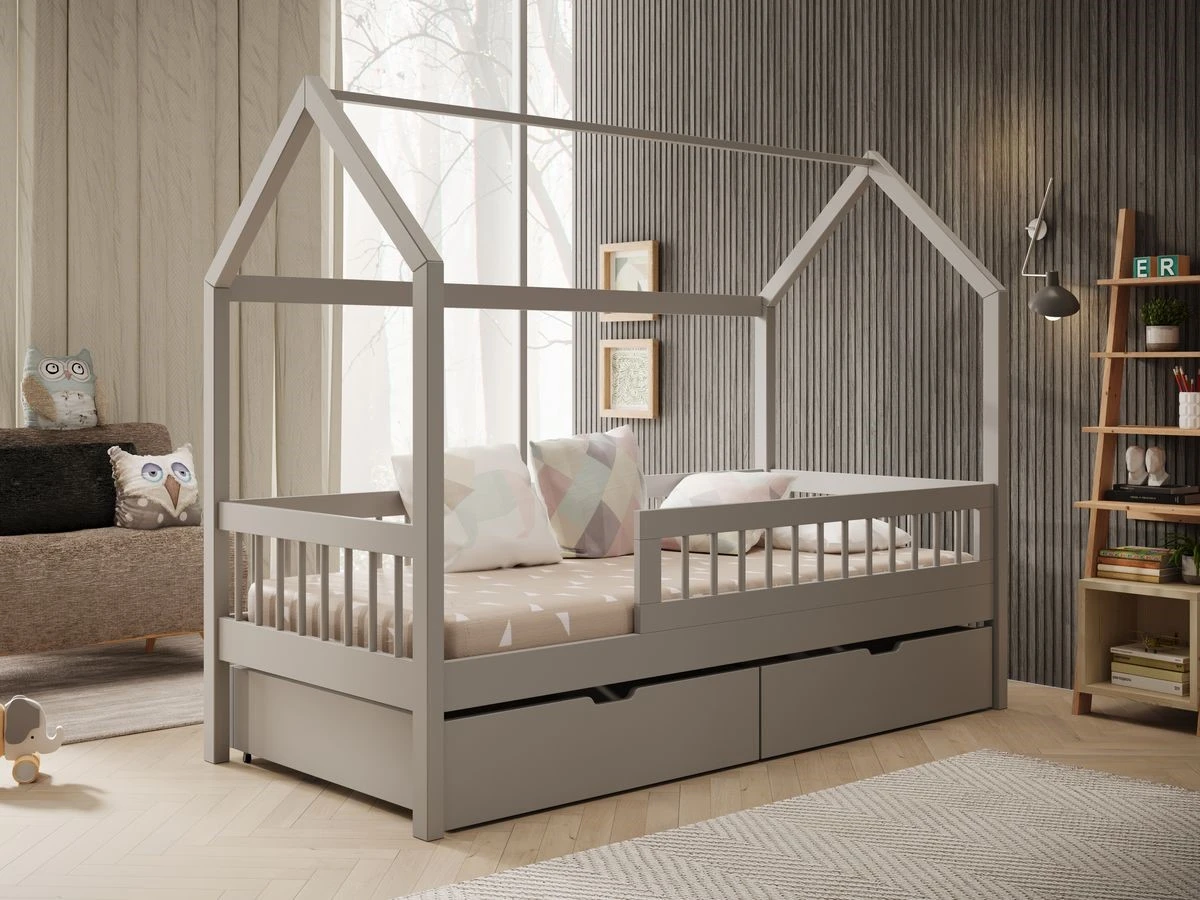 Rám postele je vyroben ze dřeva, zatímco zbytek tvoří odolná laminovaná deska. Součástí balení je pohodlný matrac. Postel je dostupná ve více barevných variantách, takže snadno zapadne do každého dětského pokoje.