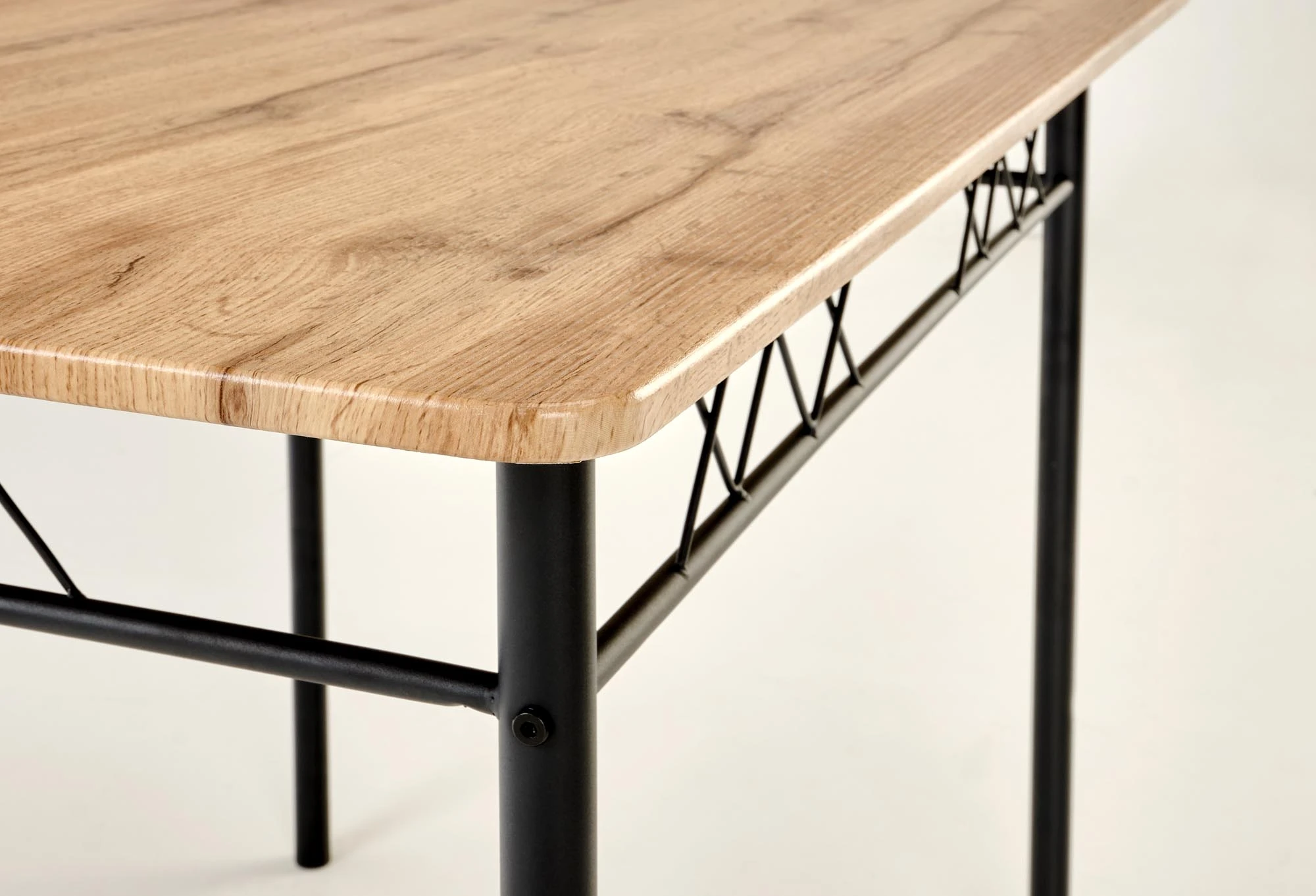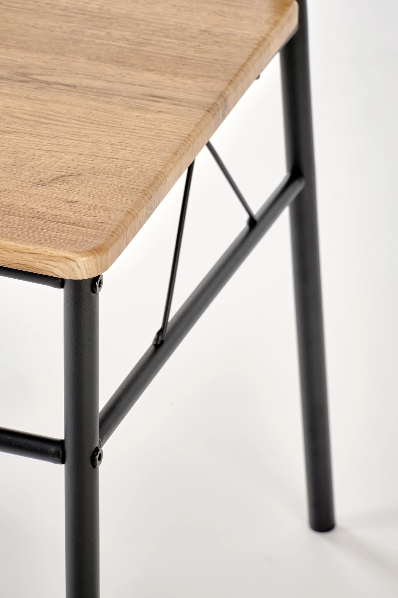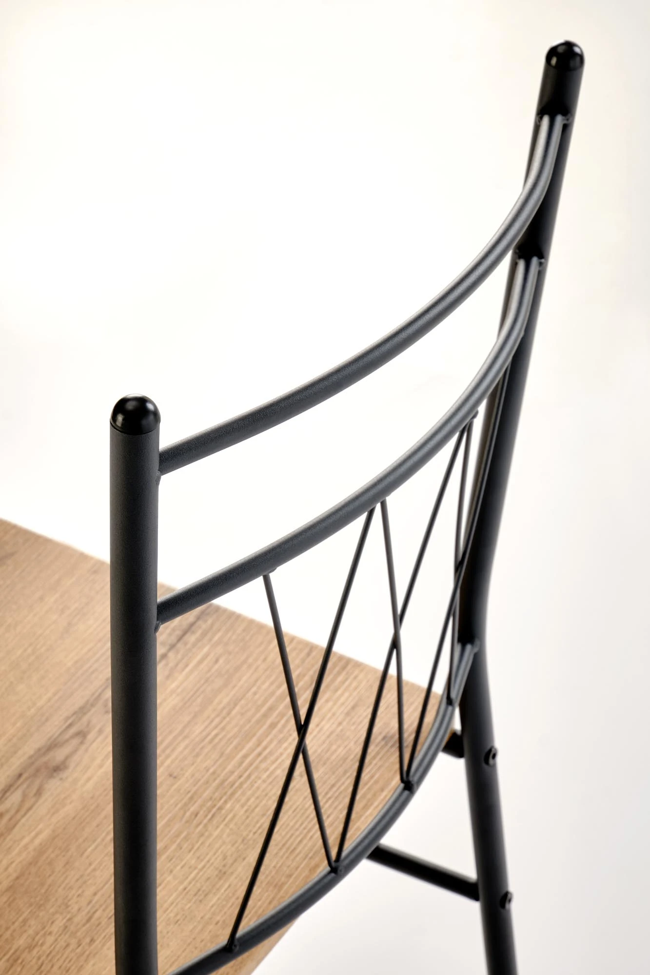 Kombinace přírodního dekoru dřeva a černého kovu odpovídá modernímu loft stylu, který působí nadčasově a snadno se kombinuje s ostatním nábytkem. Díky kompaktním rozměrům lze židle jednoduše zasunout pod stůl a ušetřit tak místo.