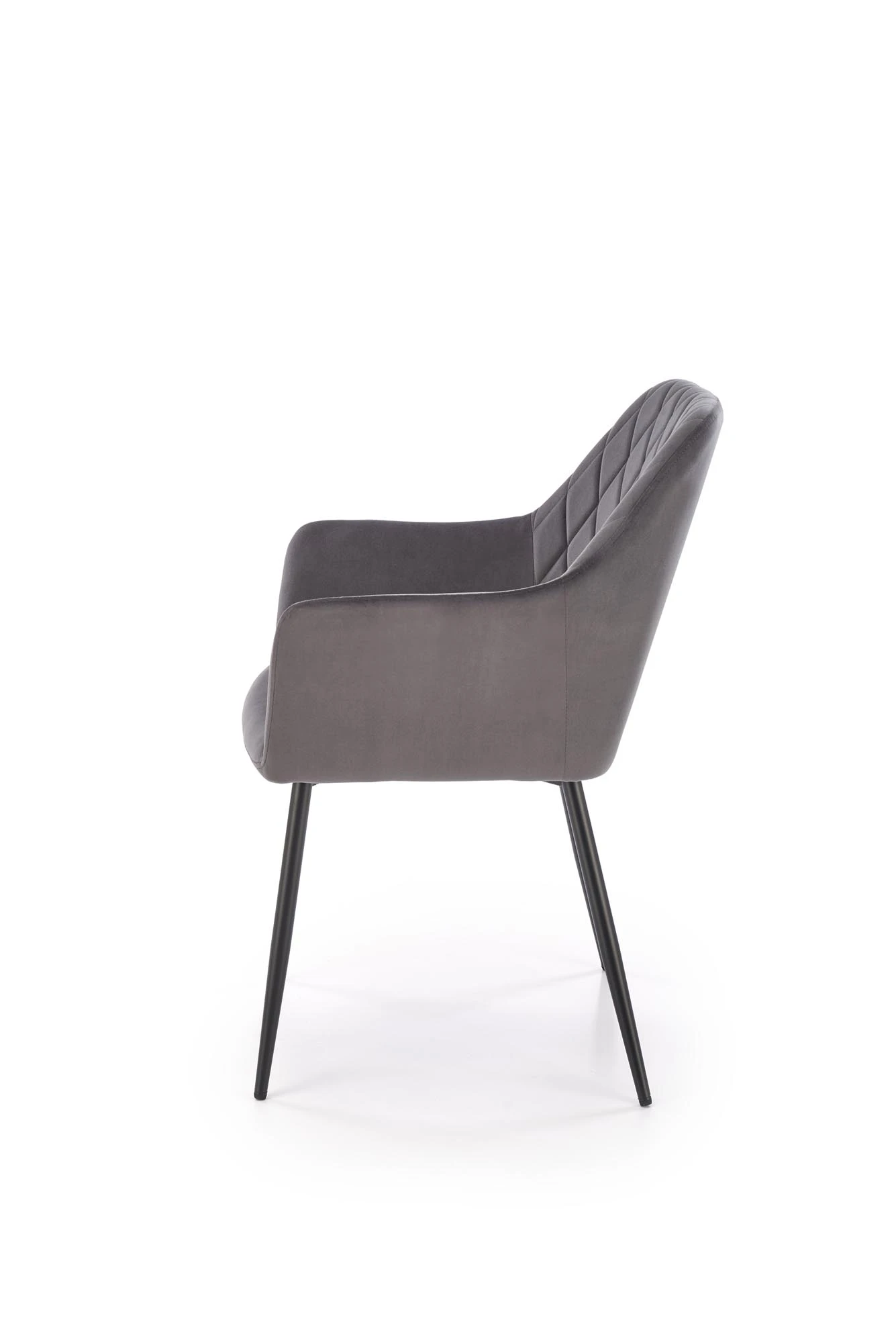 Kombinace moderní jednoduchosti a klasické elegance dává této židli univerzální využití v různých typech interiérů. Sedák a opěradlo jsou potaženy jemnou sametovou tkaninou, která je na dotek měkká a příjemná, což zajišťuje komfort i při delším sezení. Stabilní kovová konstrukce s rovnými nohami z profilu kruhového průřezu je upravena práškovým lakováním pro zvýšenou odolnost a snadnou údržbu. Židle není určena ke stohování, což potvrzuje její robustní zpracování. Hodí se do jídelen, obývacích pokojů nebo jednacích prostor.