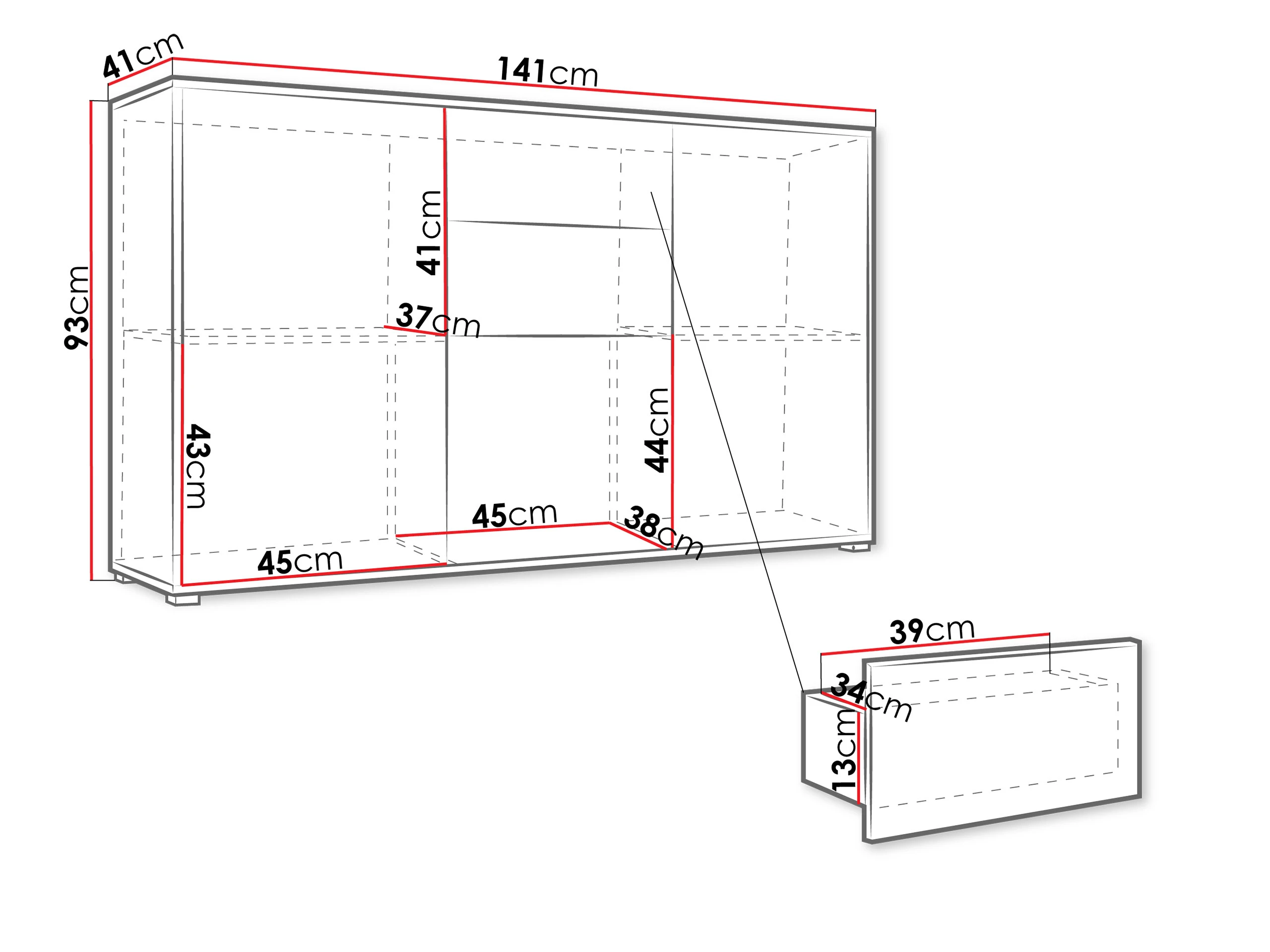 Model nabízí dva šuplíkytři uzavíratelné skříňky, což poskytuje dostatek úložného prostoru pro oblečení, dokumenty i doplňky. Díky systému „PUSH TO OPEN“ lze zásuvky i dvířka snadno otevřít bez potřeby úchytek – stačí lehký stisk čelní plochy. Kolejnicové pojezdy zajišťují plynulý a tichý chod zásuvek, zatímco jednoduché panty umožňují snadné ovládání dvířek.