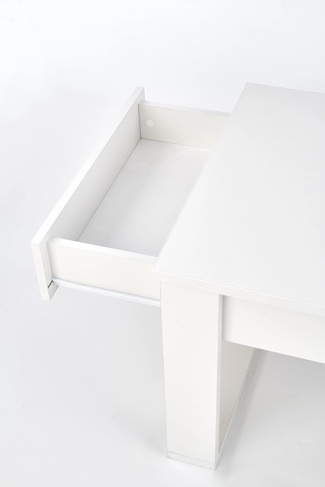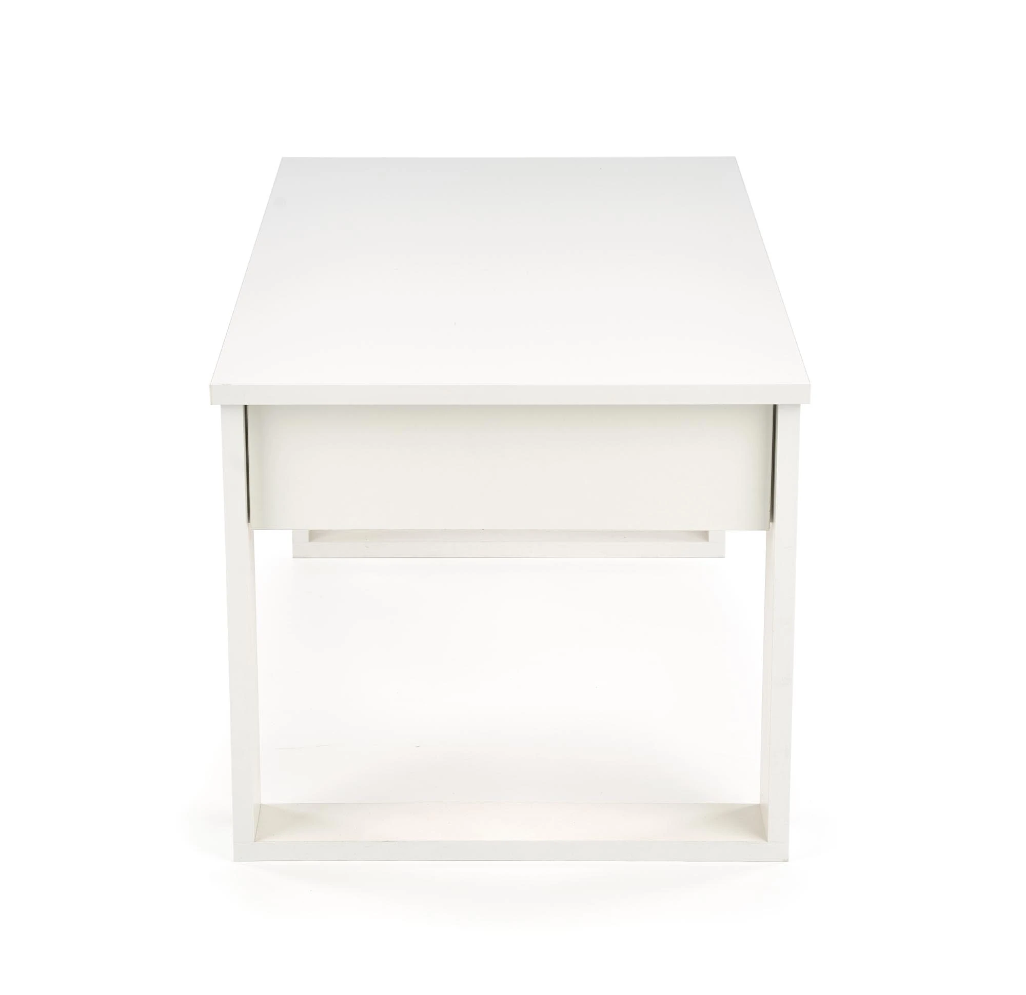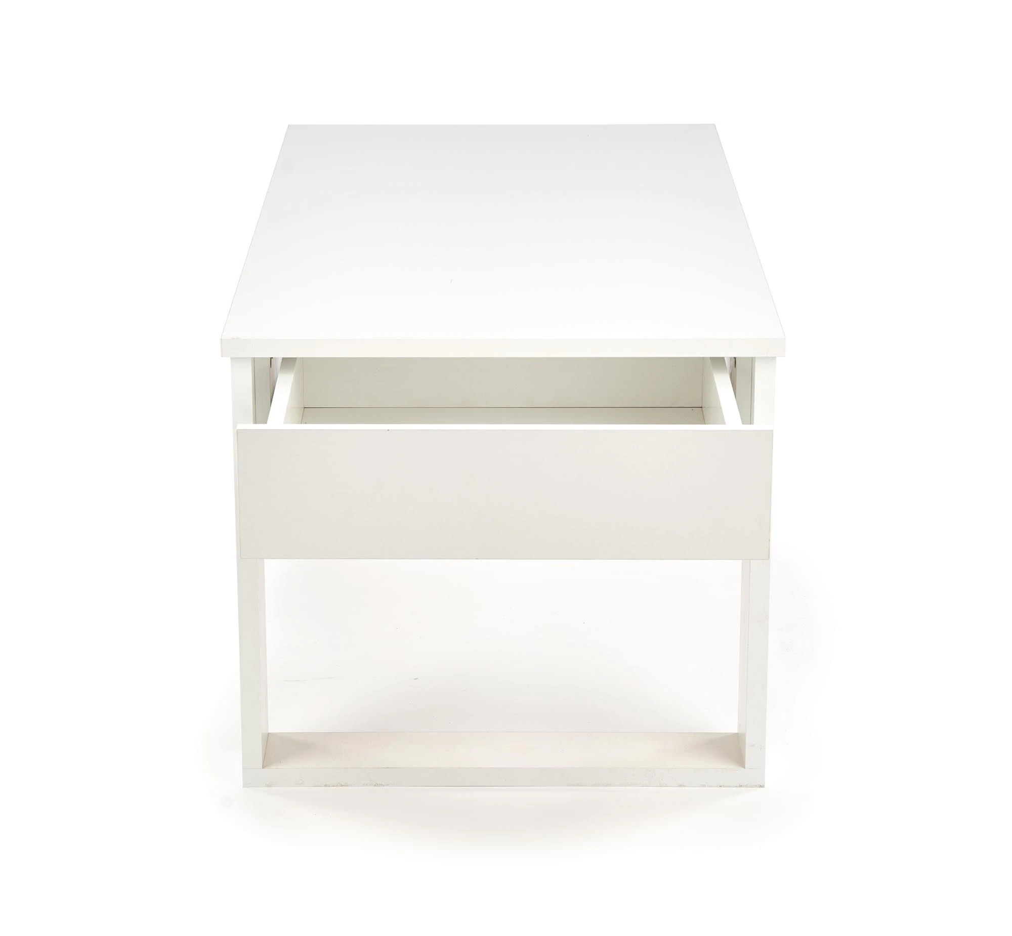 Biurko disponuje třemi zásuvkami a dvěma otevřenými policemi, které umožňují přehledné uložení kancelářských potřeb, knih i drobností. Díky tomu zůstává pracovní plocha organizovaná a připravená k práci.