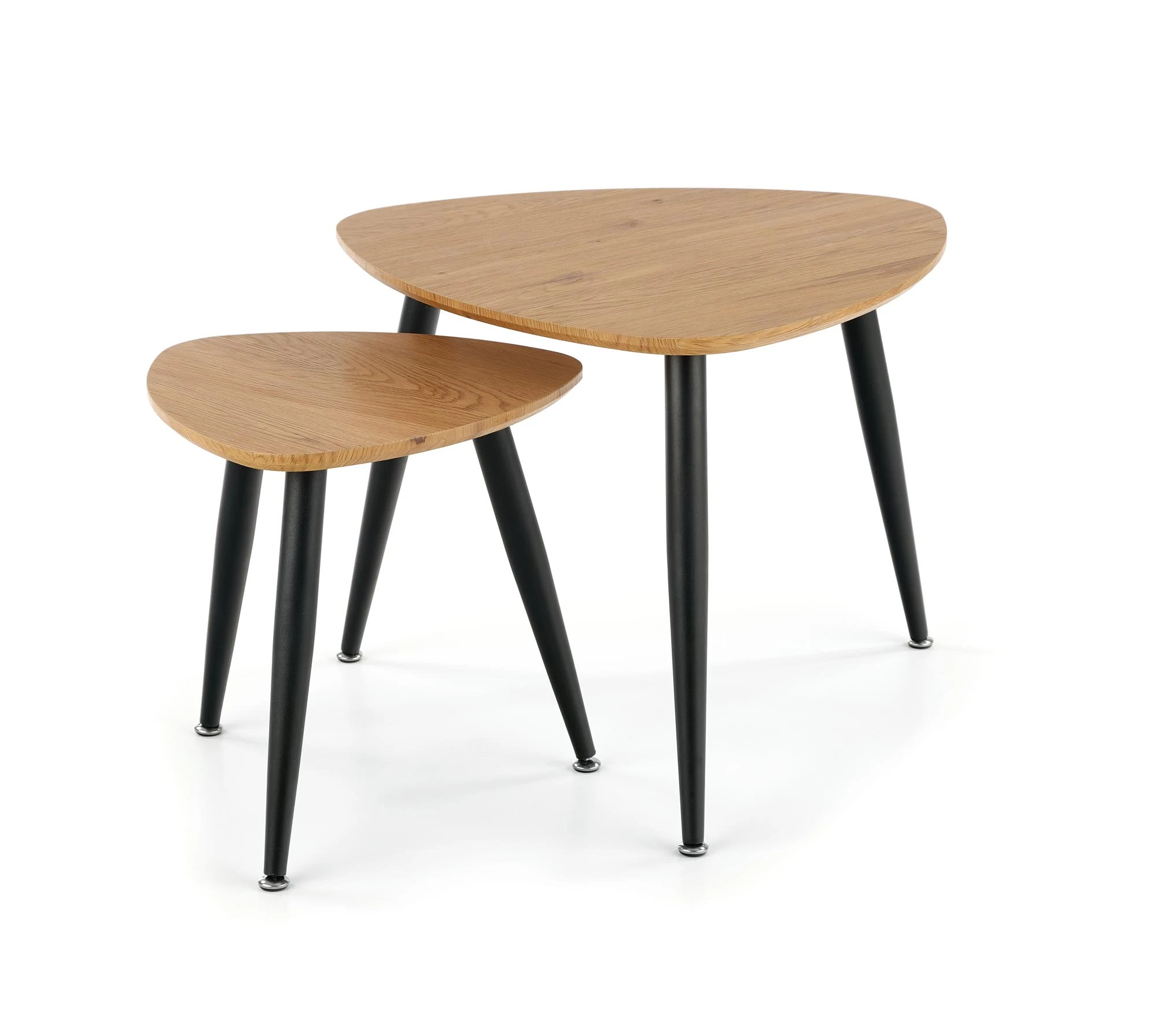 NICEA – sada dvou stolků v dekoru dub a s černým kovovým rámem