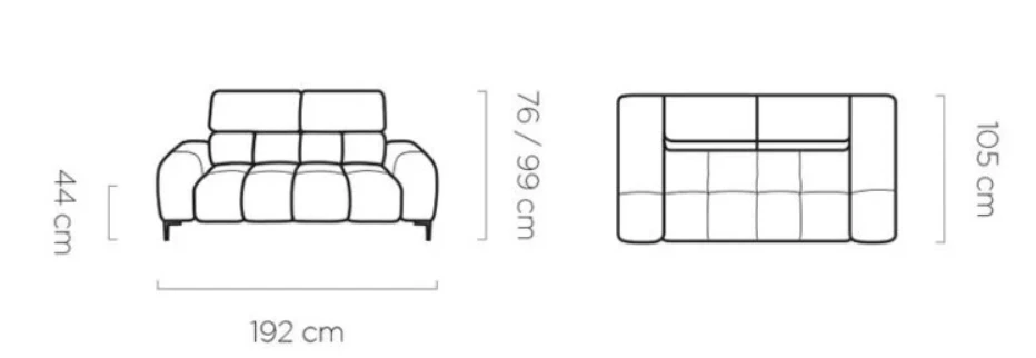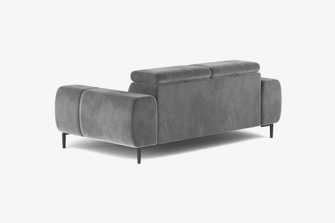 Polohovatelné záhlavníky (3×) umožňují individuální nastavení výšky pro každého uživatele, čímž zajišťují komfort i při delším sezení nebo odpočinku. Kovové nožky v černém nebo zlatém provedení zvýrazňují moderní vzhled a zároveň usnadňují úklid pod pohovkou.