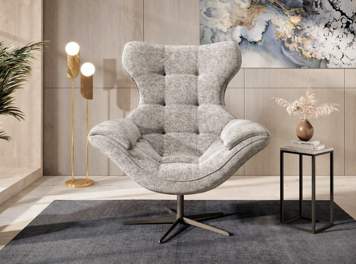 Jeho kompaktní a elegantní design zajišťuje, že křeslo Yoga nezabírá příliš mnoho místa, což je ideální pro menší obývací pokoje nebo prostory, kde je důležité zachovat otevřený a vzdušný vzhled. Navíc jeho všestranný styl umožňuje snadné sladění s různými typy nábytku a dekorací.