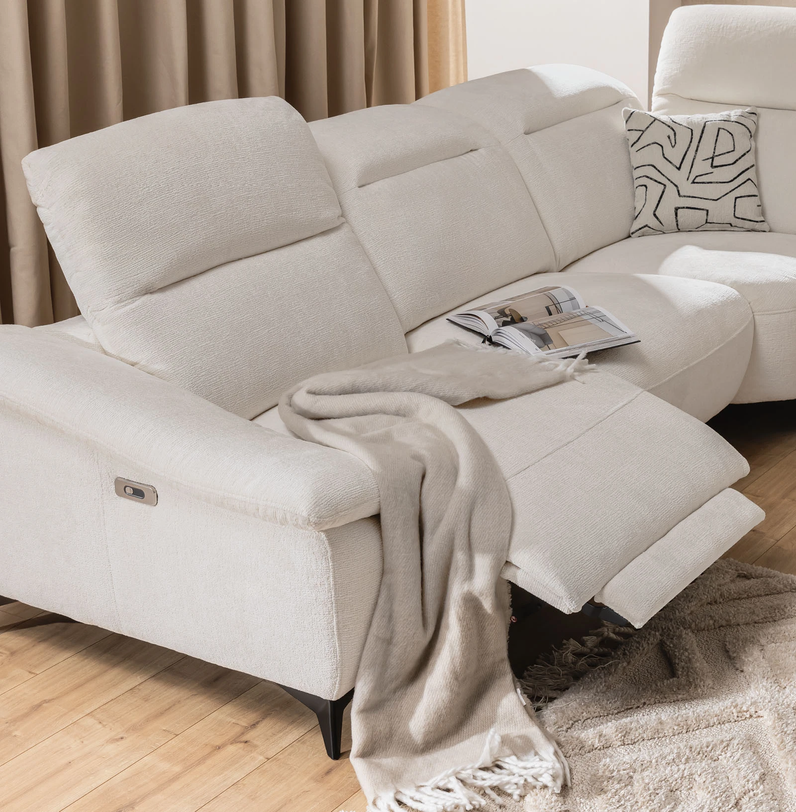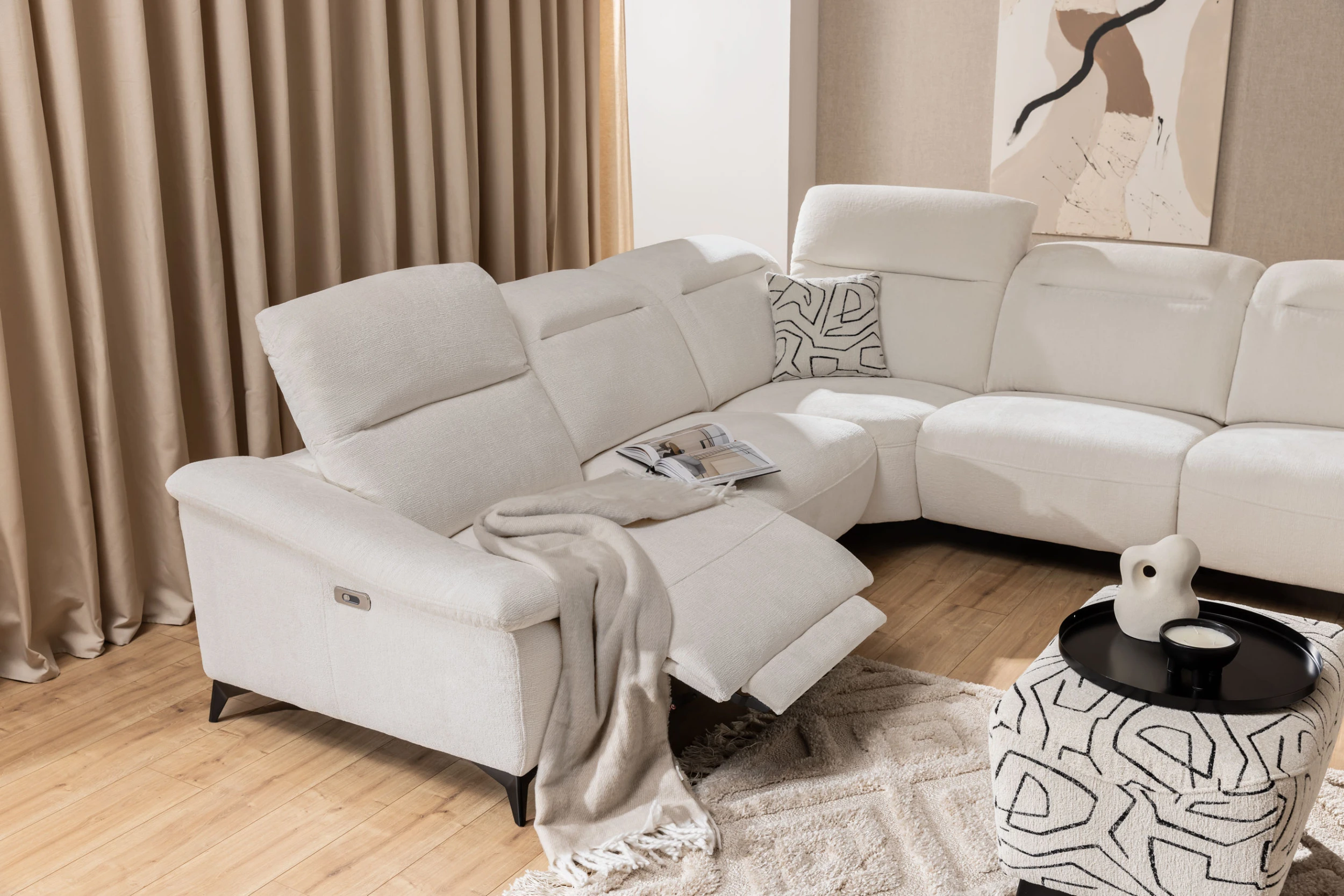 Volitelné kovové nožky sedačky zaručují pevnost a dlouhou životnost celé sedací soupravy. Pro ještě větší pohodlí jsou opěrky hlavy polohovatelné, což umožňuje přizpůsobení podpory podle vašich potřeb. Praktický úložný prostor nabízí dostatek místa pro uložení různých předmětů a udržení pořádku v obývacím pokoji.