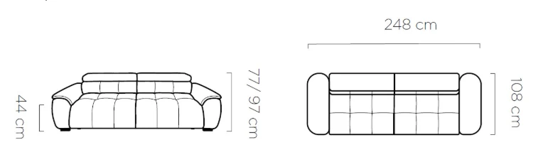 O výjimečný komfort se stará kombinace pružin faliste a kvalitní PUR pěny, která zajišťuje optimální oporu i příjemně měkké sezení. Pohovka disponuje elektrickým výsuvem sedáku až o 27 cm, takže si snadno vytvoříte ideální prostor pro relaxaci, ležení nebo příležitostné přespání.