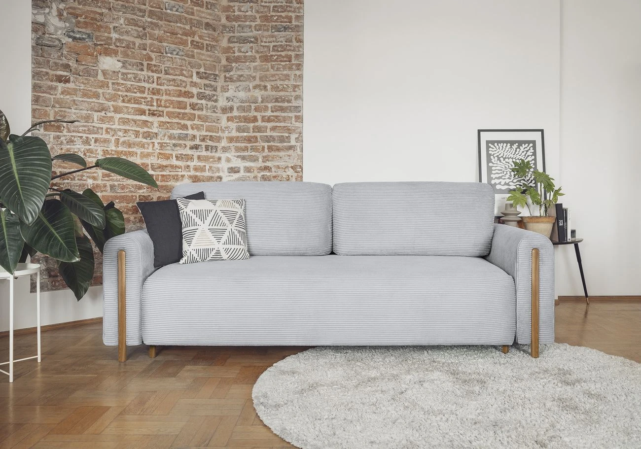 Díky rozkládacímu systému DL proměníte pohovku během chvilky na komfortní lůžko o rozměrech 146 × 200 cm, ideální pro příležitostné přespání. Nechybí ani praktický úložný prostor, ideální na lůžkoviny či deky. Čalouněná záda umožňují umístění do prostoru a vysoké dřevěné nožky dodávají modelu lehkost a usnadňují úklid pod nábytkem.