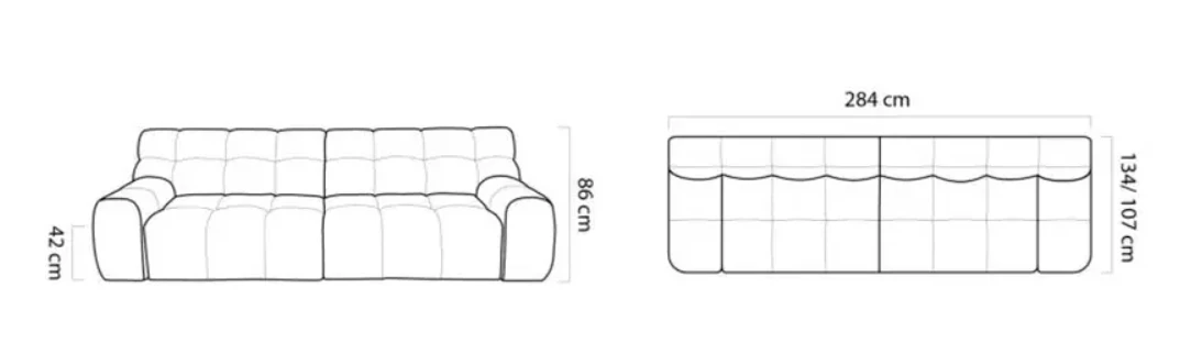 Tento model je navržen pro maximální pohodlí a elegantní vzhled. Pevná konstrukce z masivního dřeva a dřevotřísky zaručuje dlouhou životnost a stabilitu. Sedací část s pružinami faliste a HR pěnou poskytuje měkké, ale pevné sezení, které se nepřetváří. Elektrický výsuv sedáku se ovládá přímo z područky, což umožňuje snadnou a rychlou změnu polohy. Pohovka stojí na nízkých nožkách, které zajišťují stabilitu a neruší čistý design.