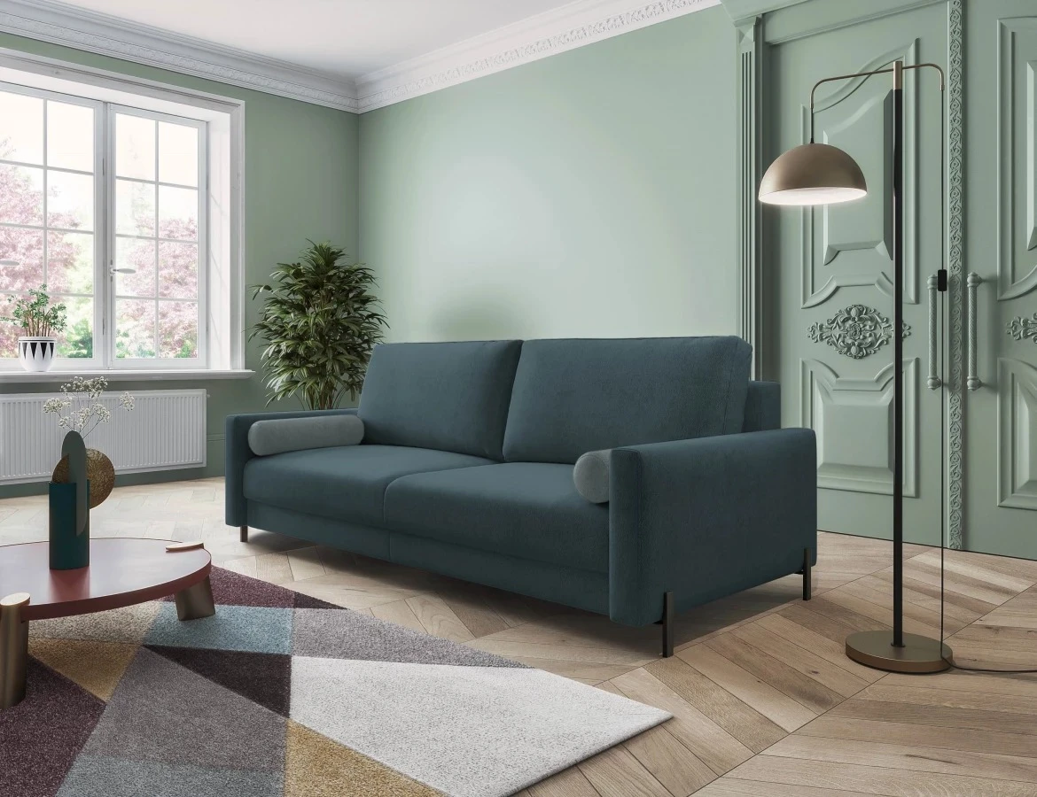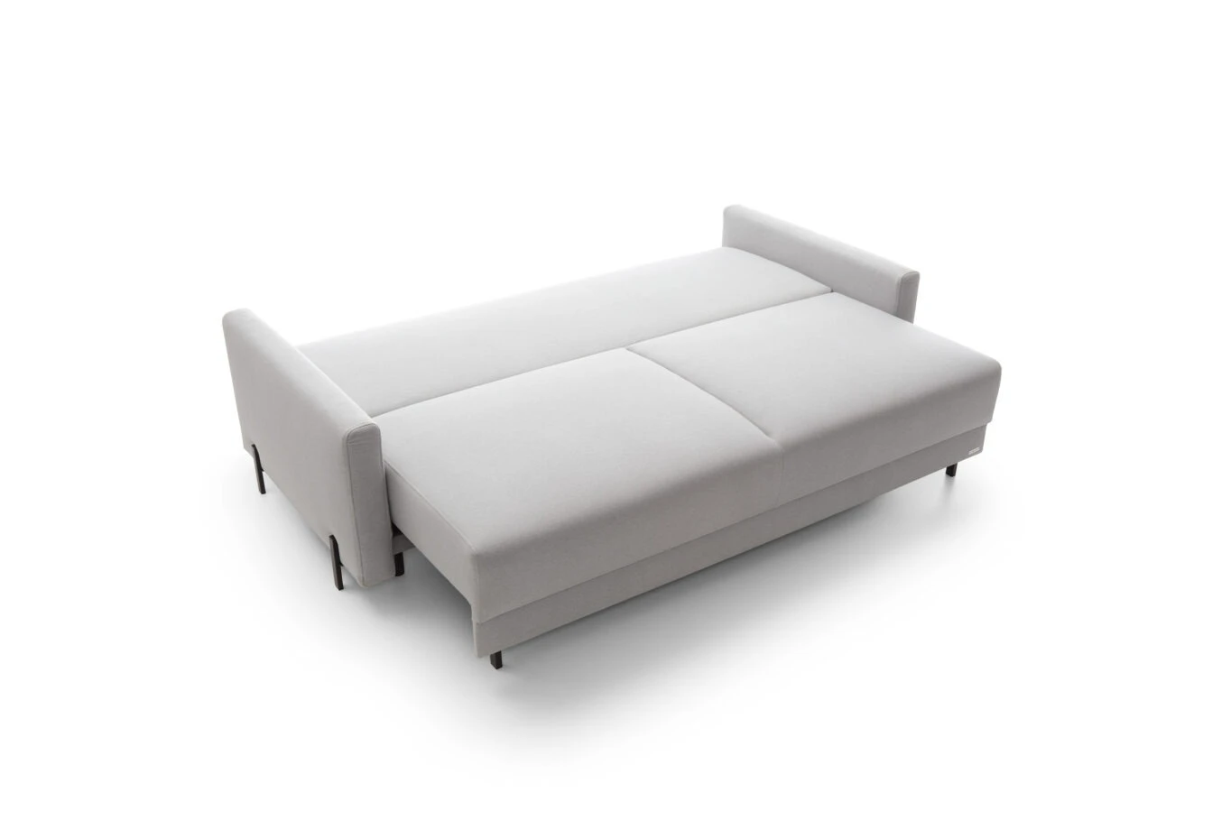 Snadným mechanismem pohovku rozložíte na prostorné lůžko o velikosti 190 × 137 cm, vhodné pro každodenní relaxaci nebo příležitostné přespání. Pod sedákem se navíc ukrývá velkorysý úložný prostor, ideální pro uložení lůžkovin či sezónních věcí.