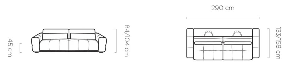 Velkou výhodou je elektrický výsuv sedací plochy, díky kterému lze prodloužit hloubku sedu až o 27 cm. Pohovku tak snadno přizpůsobíte pro maximální pohodlí nebo ji využijete jako lůžko pro příležitostné spaní.