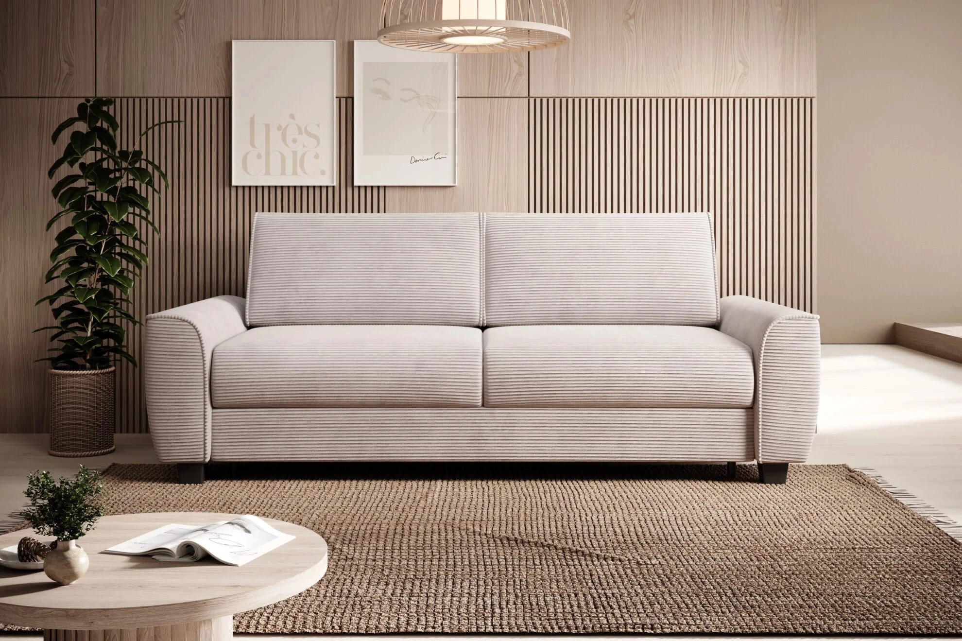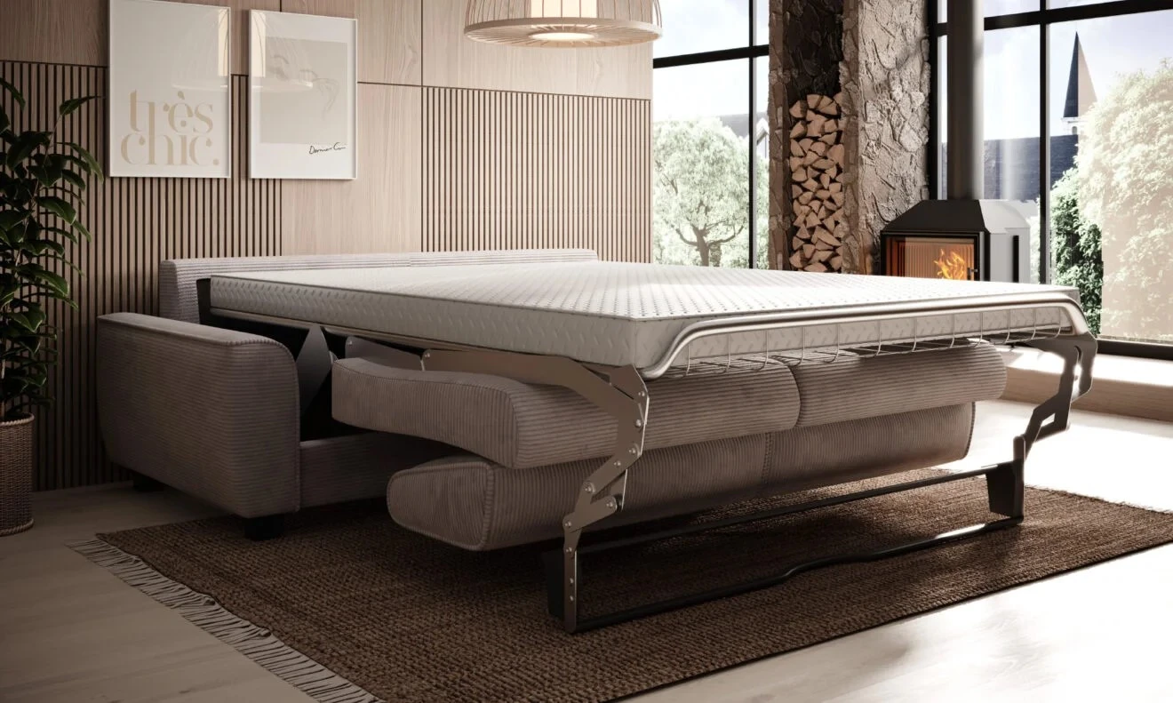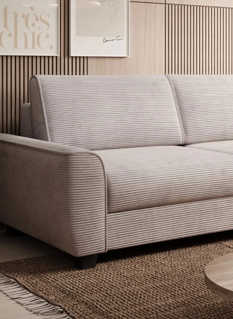 Tento model je vybaven rozkládacím mechanismem RAPIDO, který během několika vteřin vytvoří plnohodnotnou spací plochu o rozměru 140 × 190 cm – ideální pro každodenní využití. Matrace z Komfortschaum pěny zajistí ergonomickou oporu při spánku, zatímco kombinace SOFT LUX pěny a pružin faliste v sedáku přináší komfortní a stabilní sezení. Konstrukce z borovicového dřeva a MDF desek zaručuje pevnost a dlouhou životnost. Kovové nožky v černém provedení pak podtrhují elegantní vzhled celé pohovky.