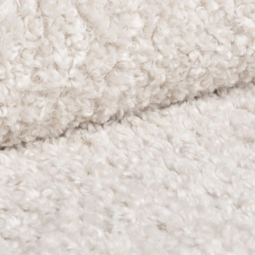 Index otěru - 30 000 cyklů, gramáž cca 560 g/m², měkká bouclé, vysoká pevnost, odolnost proti žmolkování, velmi dobrá stálobarevnost, nehořlavou úpravou a příjemným, hřejivým povrchem vhodným pro každodenní používání.