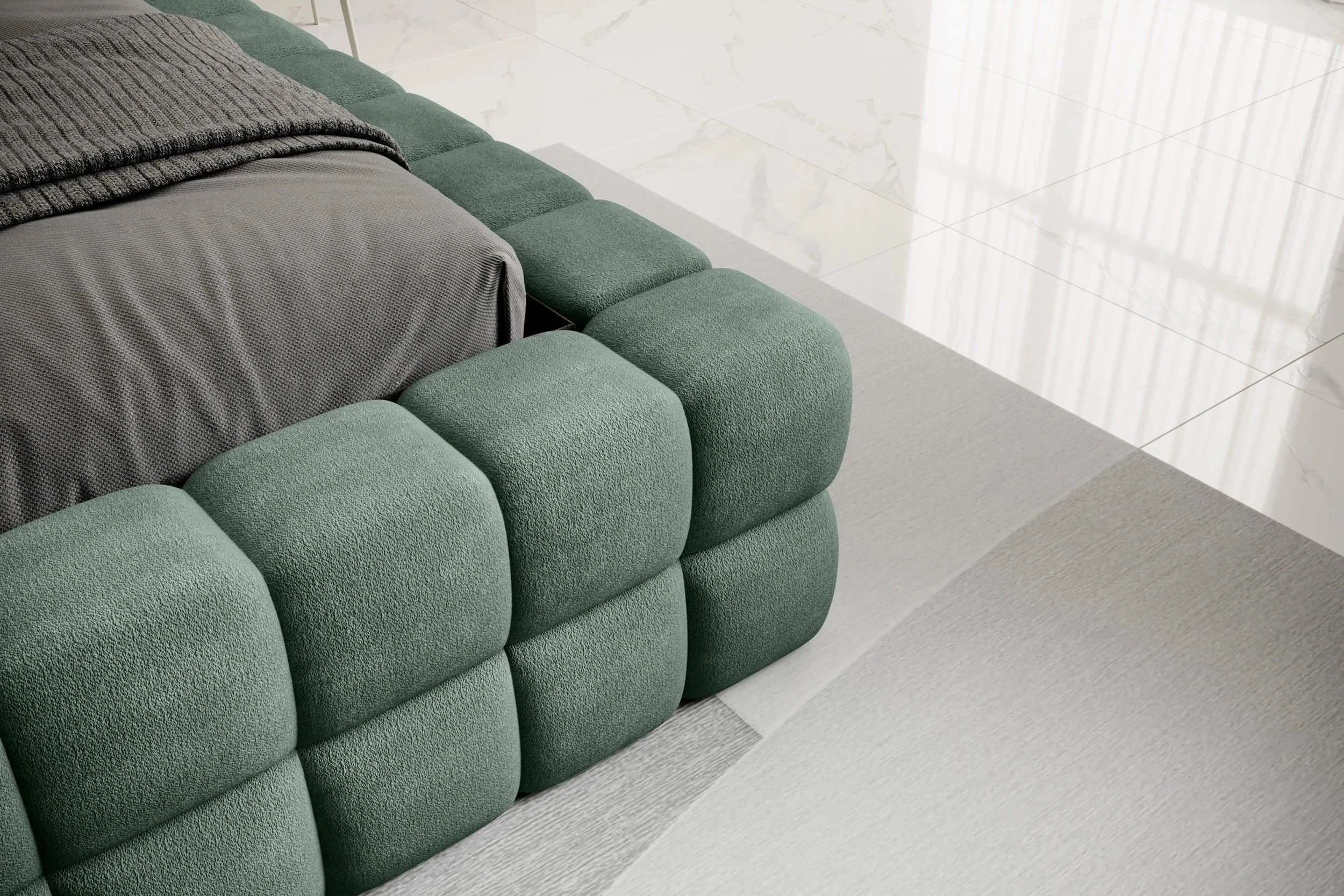 Vneste do své ložnice nádech luxusu s postelí DIZZLE. Její vysoké čelo s čtvercovým prošíváním a měkkým polstrováním zaručí pohodlí při večerním relaxu i výrazný vizuální dojem. Praktický úložný prostor a pevná konstrukce jsou ideální volbou pro každodenní komfort i stylové bydlení.