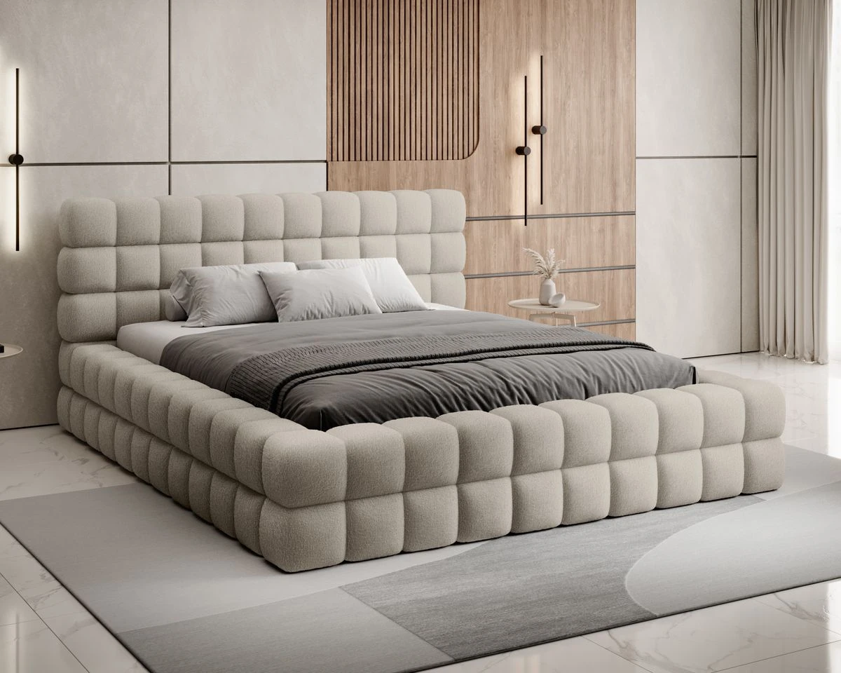 Vneste do své ložnice nádech luxusu s postelí DIZZLE. Její vysoké čelo s čtvercovým prošíváním a měkkým polstrováním zaručí pohodlí při večerním relaxu i výrazný vizuální dojem. Praktický úložný prostor a pevná konstrukce jsou ideální volbou pro každodenní komfort i stylové bydlení.