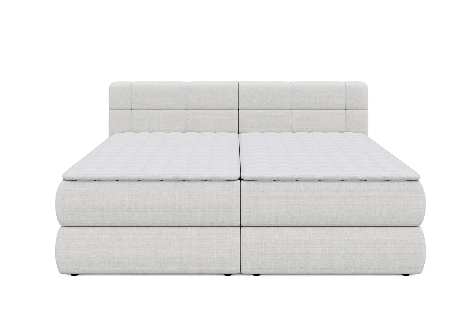 Konstrukci tvoří pevná kombinace masivního dřeva a dřevotřísky, která zajišťuje stabilitu a dlouhou životnost. Spací komfort je výsledkem sofistikovaného vrstvení – spodní box je vyplněn pružinami Bonell, střední matrace obsahuje taštičkové pružiny se 7 zónami tvrdosti, a celkový komfort završuje topper z vysoce elastické HR pěny, který se dokonale přizpůsobí vašemu tělu.