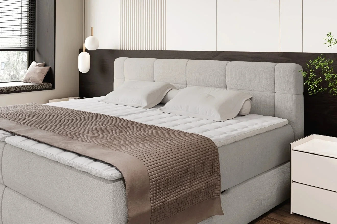 Hledáte postel, která se stane dominantou vaší ložnice a zároveň vám zajistí spánek na nejvyšší úrovni? Boxspringová postel Grande splní vaše představy o luxusu i pohodlí. Její moderní design s vysokým čalouněným čelem rozděleným na elegantní panely působí noblesně a dokonale zapadne jak do minimalistických, tak do klasických interiérů.