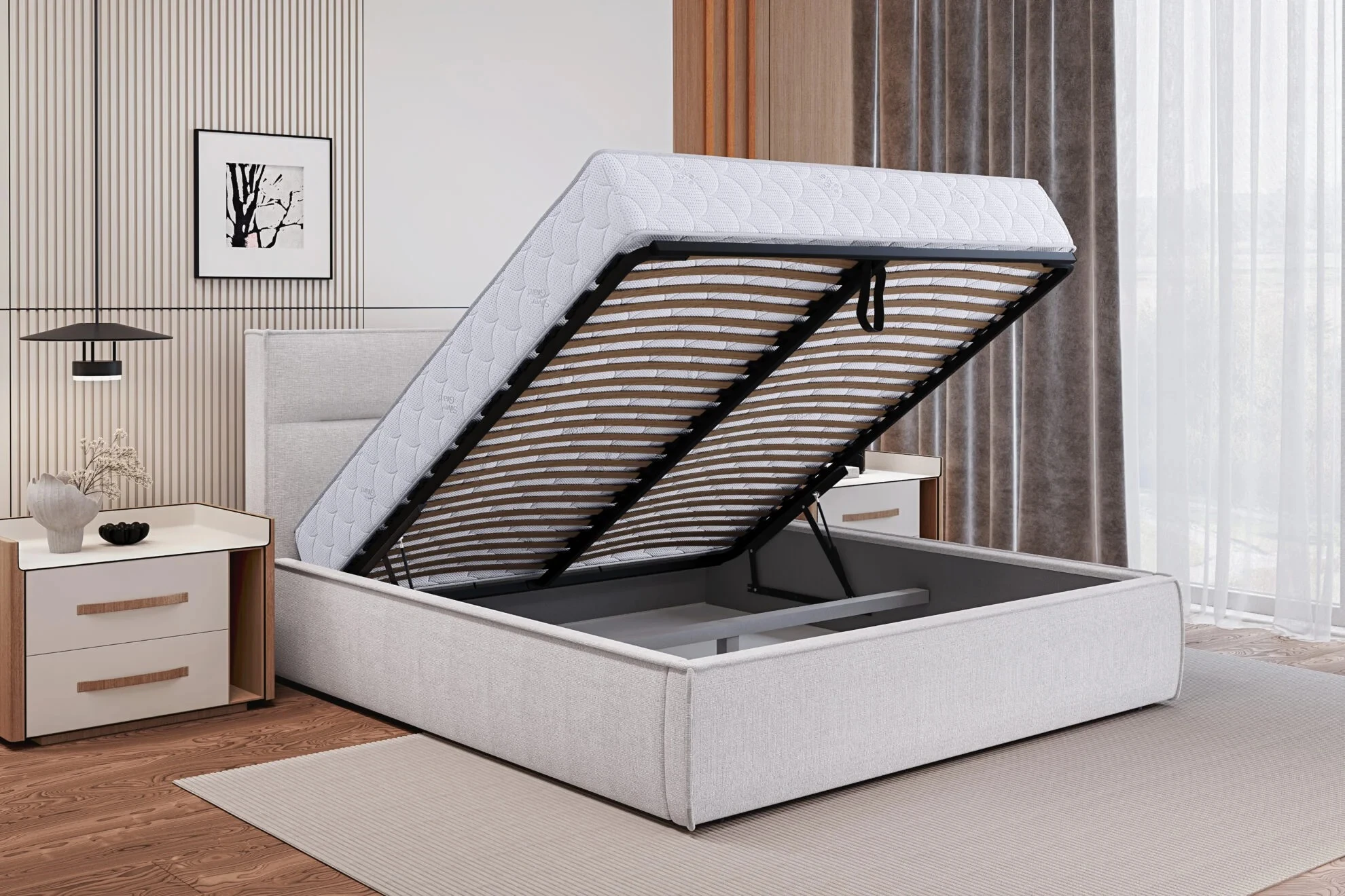 Čalouněná postel KELLY 160×200 – minimalistická postel s úložným prostorem a roštem