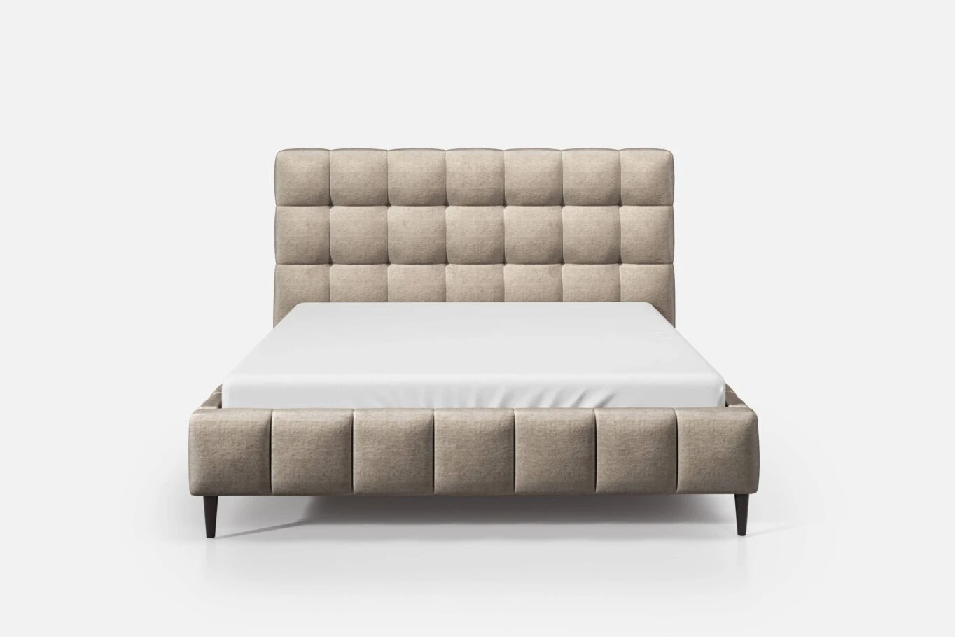 Rám postele i čelo jsou čalouněné kvalitní látkou dle vašeho výběru, přičemž výplň tvoří pružná PUR pěna, která přidává na měkkosti a komfortu. Stabilní konstrukce z masivního dřeva a odolné dřevotřísky zaručuje dlouhou životnost.