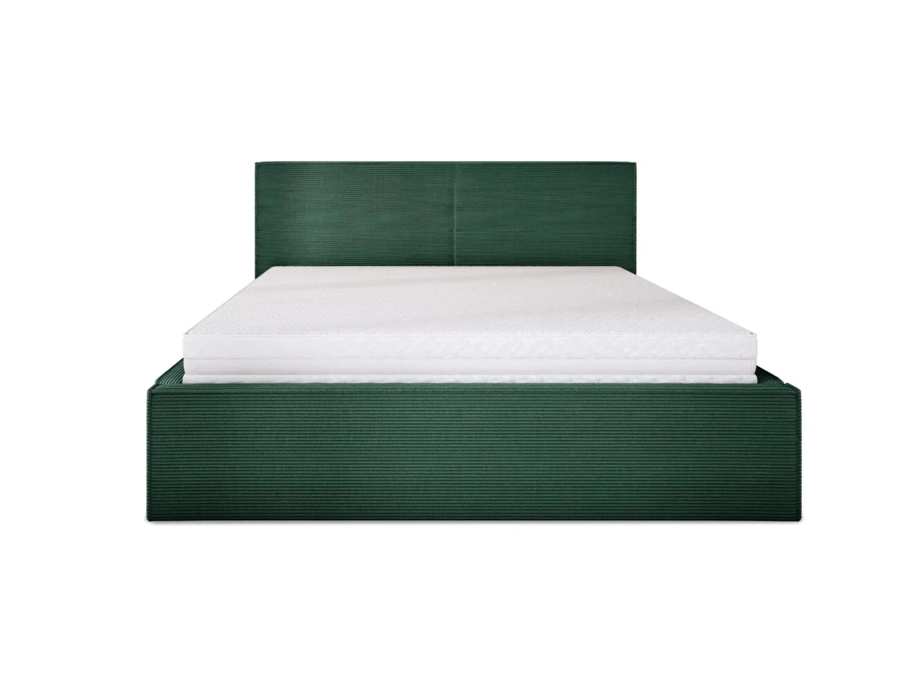 Základem postele je pevná konstrukce z masivního borovicového dřeva v kombinaci s MDF deskami, která zajišťuje stabilitu a dlouhou životnost. Čalouněný rám i čelo jsou vyplněny kvalitní PUR pěnou, díky které je postel příjemná na dotek a pohodlná při opření.
