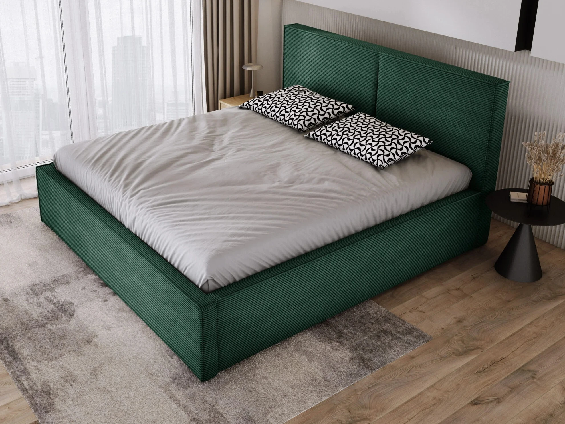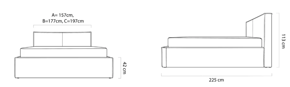 Základem postele je pevná konstrukce z masivního borovicového dřeva v kombinaci s MDF deskami, která zajišťuje stabilitu a dlouhou životnost. Čalouněný rám i čelo jsou vyplněny kvalitní PUR pěnou, díky které je postel příjemná na dotek a pohodlná při opření.