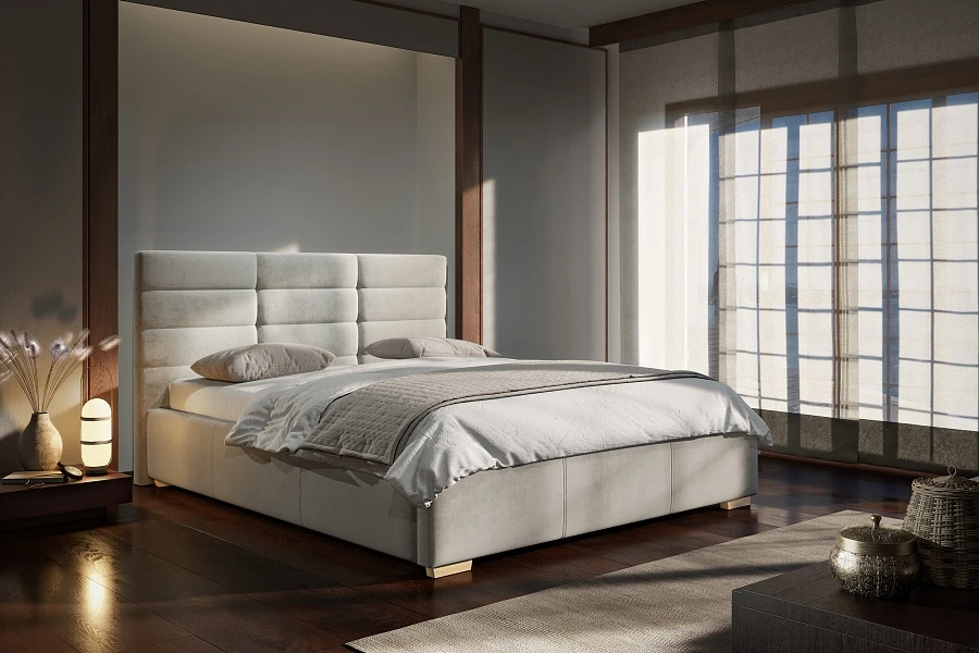 - S roštem, bez úložného prostoru – praktická volba, která nabízí pohodlný dřevěný rošt a elegantní design, ale bez úložné funkce.