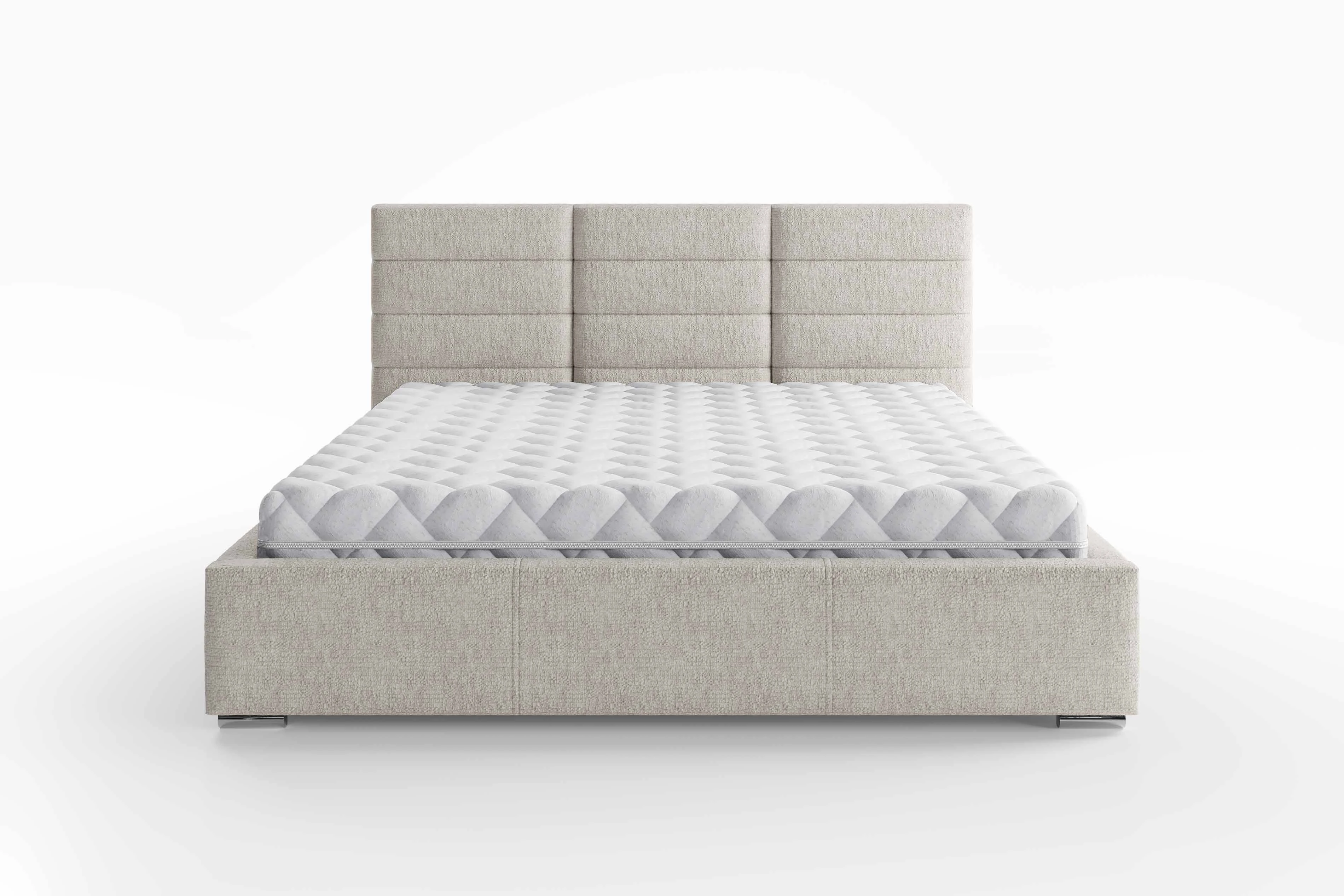 Postel MARS je důkazem, že moderní design může být zároveň pohodlný a praktický. Sofistikované prošívané čelo dodává celé ložnici stylový výraz, zatímco možnost volby mezi variantami s roštem a úložným prostorem z ní dělá flexibilní řešení přesně podle vašich představ.