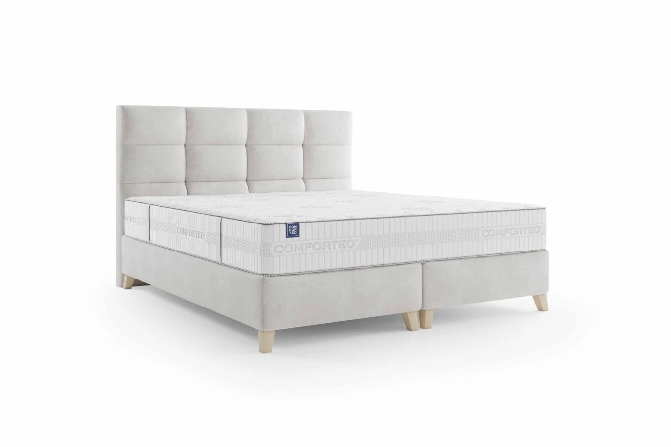 Postel je navržena tak, aby spojila eleganci s funkčností. Čelo i rám jsou čalouněny kvalitní látkou, vyplněnou měkkou PUR pěnou, která poskytuje nejen estetický vzhled, ale i pohodlnou oporu při relaxaci.