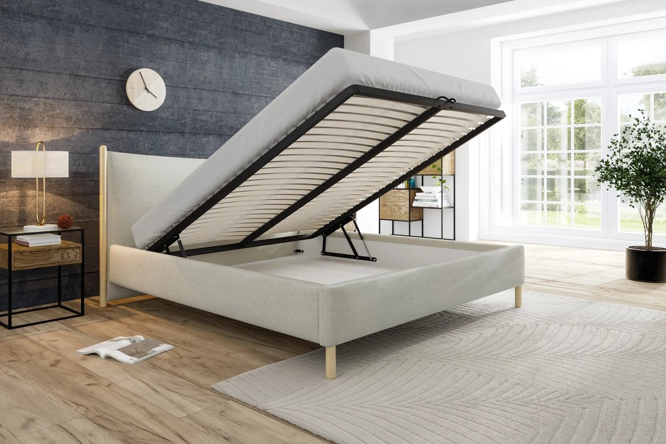 Pod matrací se nachází velký úložný prostor, který je přístupný díky plynovým pístům – snadno se otevírá a zavírá, takže do něj pohodlně uložíte ložní prádlo, deky, polštáře či sezónní oblečení.