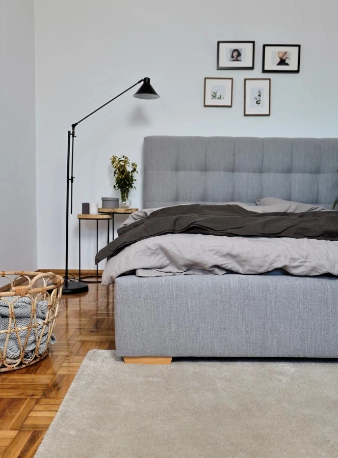 Dalším benefitem je možnost výběru potahových látek a barvy nožek, díky čemuž si postel můžete sladit přesně s interiérem vaší ložnice. Nízké dřevěné nožky zajišťují stabilitu a celkovému designu dodávají jemnou eleganci.