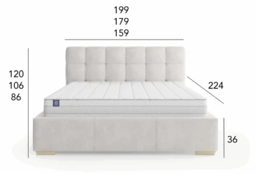 Základem postele je pevná kostra z masivního dřeva a dřevotřísky, která zaručuje dlouhou životnost a odolnost. Čalouněný rám i čelo jsou vyplněny měkkou PUR pěnou, jež poskytuje pohodlnou oporu nejen při spánku, ale i při čtení nebo odpočinku u televize.