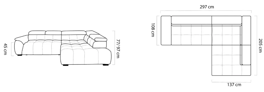 Nechybí ani polohovatelné záhlavníky, které zajistí ideální oporu hlavy a krku při odpočinku. Díky čalouněným zádům lze sedačku umístit i do prostoru, kde vynikne její elegantní design. Alvin L tak představuje ideální volbu pro ty, kteří chtějí spojit design, funkčnost a maximální pohodlí.