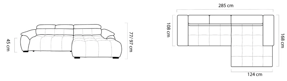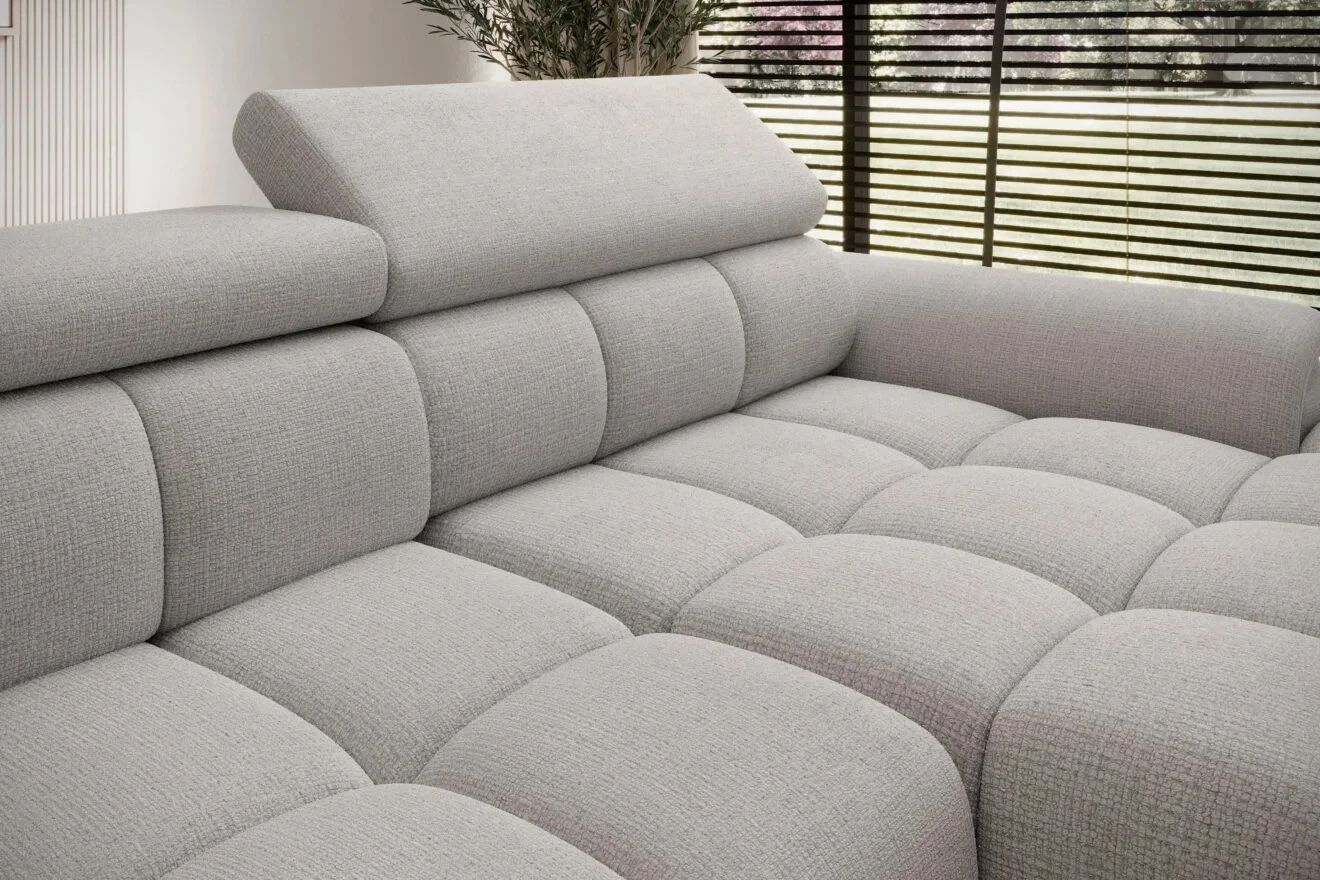 Maximální komfort zajišťuje kombinace pružin faliste a kvalitní PUR pěny, která vytváří ideální rovnováhu mezi měkkostí a oporou. Hlavní předností je elektrický výsuv sedáku, díky kterému snadno prodloužíte hloubku sezení až o 27 cm a vytvoříte si dokonalý prostor pro odpočinek, ležení i příležitostné spaní. Pohodlí dále doplňují polohovatelné záhlavníky, které umožňují nastavení ideální opory hlavy.