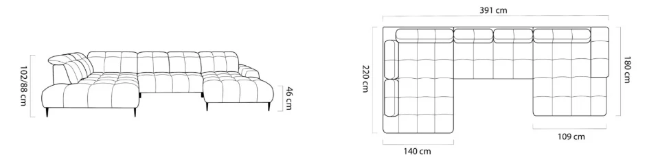 Hlavní výhodou je elektrický výsuv sedací plochy, který umožňuje prodloužení hloubky sedu až o 27 cm. Sedačku tak snadno přizpůsobíte pro relaxaci nebo ji využijete jako prostor pro příležitostné spaní. Další variabilitu nabízí posuvná zádová opěrka, díky které lze upravit hloubku sedu i bez použití elektrického mechanismu.