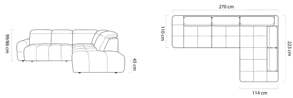 O komfort se stará kombinace pružin faliste a PUR pěny, která zajišťuje příjemně měkké sezení i optimální oporu těla. Sedačka disponuje elektrickým výsuvem sedáku až o 60 cm, díky kterému si jednoduše vytvoříte ideální prostor pro odpočinek nebo příležitostné přespání.