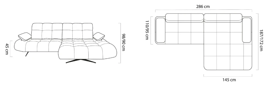 V konfiguraci si můžete zvolit pravé nebo levé provedení a také vybírat z více než 300 potahových látek a materiálů.