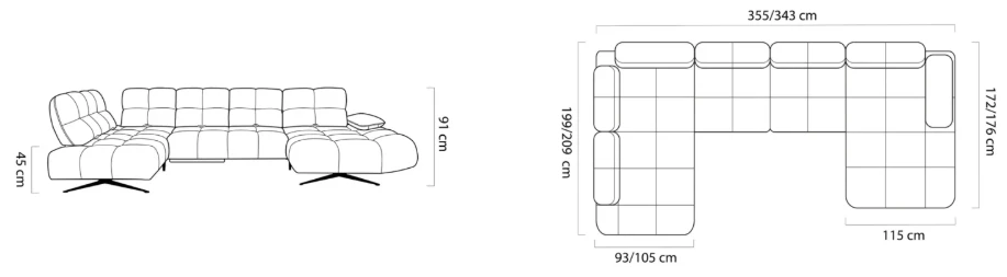V konfiguraci si můžete zvolit pravé nebo levé provedení a také vybírat z více než 300 potahových látek a materiálů.