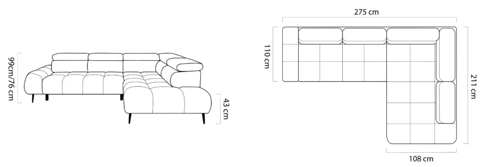 Maximální komfort doplňují polohovatelné záhlavníky (5×), které si přizpůsobíte přesně podle svých potřeb. Vysoké kovové nožky nejen podtrhují design, ale zároveň usnadňují úklid a umožňují průjezd robotického vysavače.