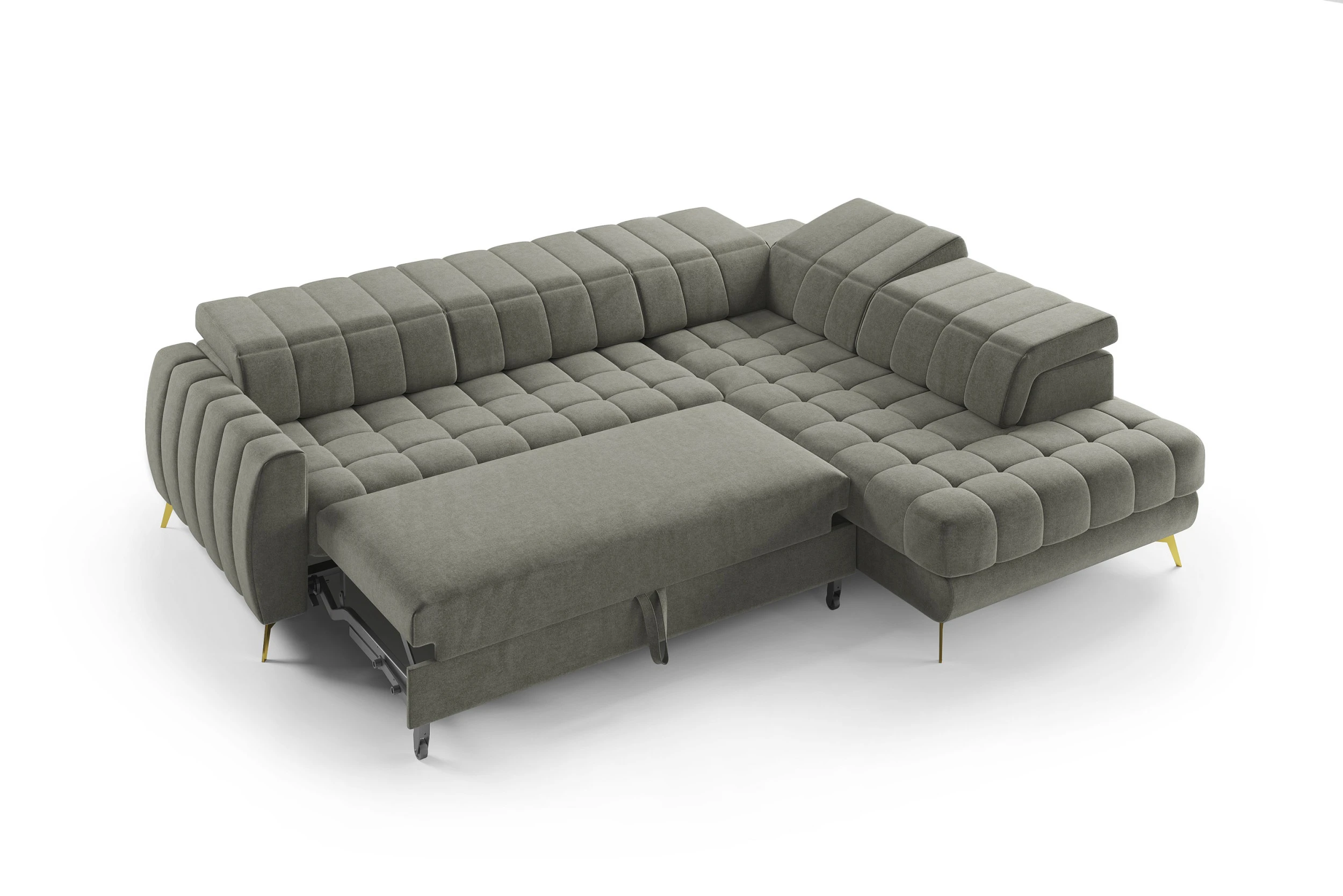 Souprava disponuje rozkládací funkcí s mechanismem typu Delfin, díky kterému snadno vytvoříte prostornou spací plochu o velikosti 145 × 193 cm. Nechybí ani velkorysý úložný prostor, který prakticky pojme lůžkoviny či další vybavení domácnosti.