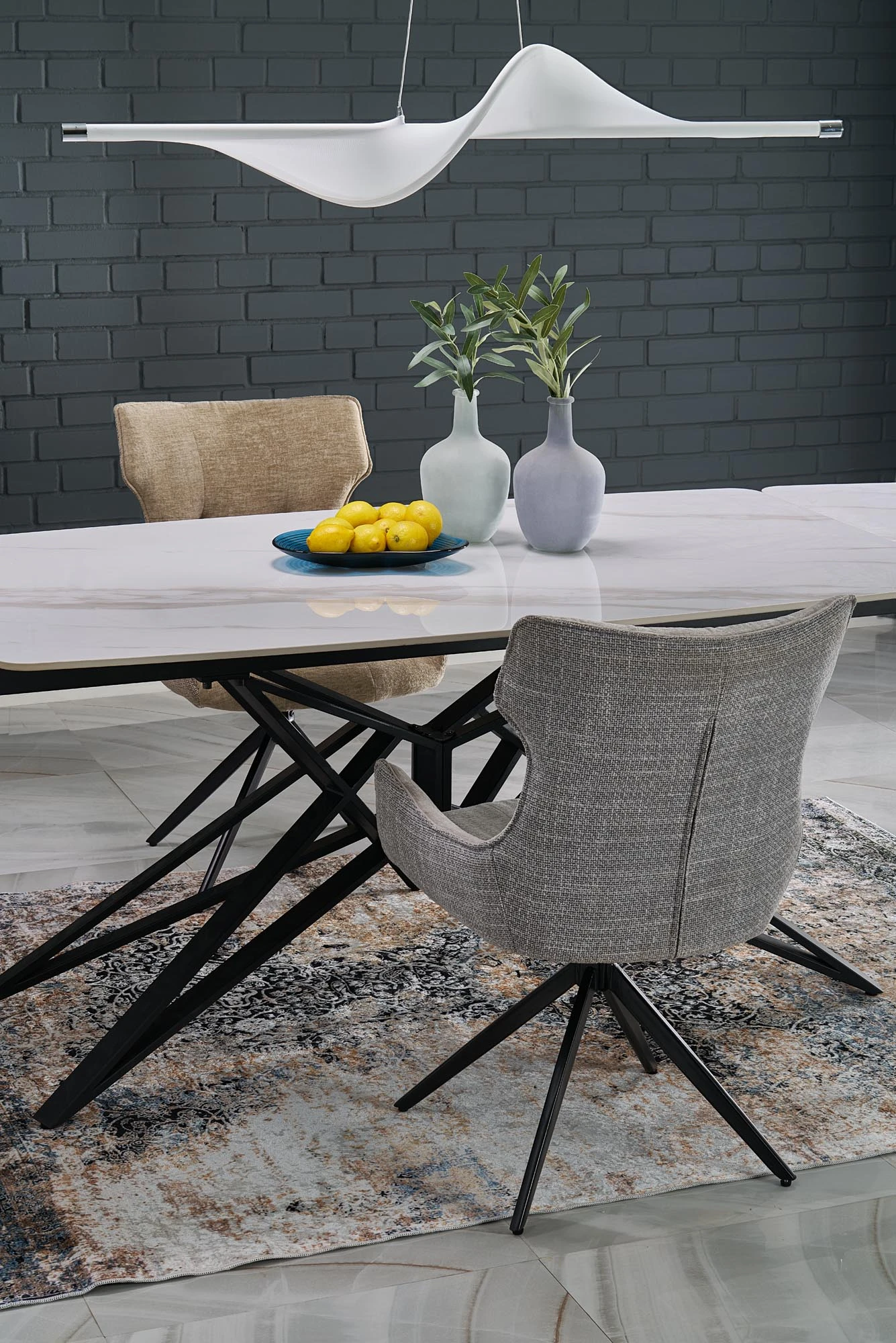 Černá kovová konstrukce s matným povrchem zajišťuje pevnost a vizuální kontrast, který skvěle doplní jak moderní, tak klasický interiér. ALFREDO se tak stává dominantním, ale zároveň funkčním prvkem vaší jídelny či obývacího prostoru.