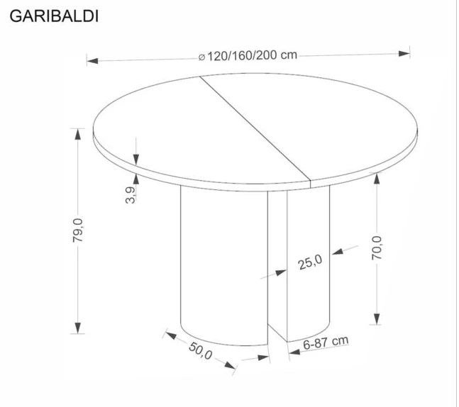 Jídelní stůl GARIBALDI je navržen s důrazem na funkčnost, stabilitu a nadčasový vzhled. Kulatý tvar desky podporuje přirozenou komunikaci u stolu a vytváří příjemnou atmosféru při každodenním stolování i společných setkáních.