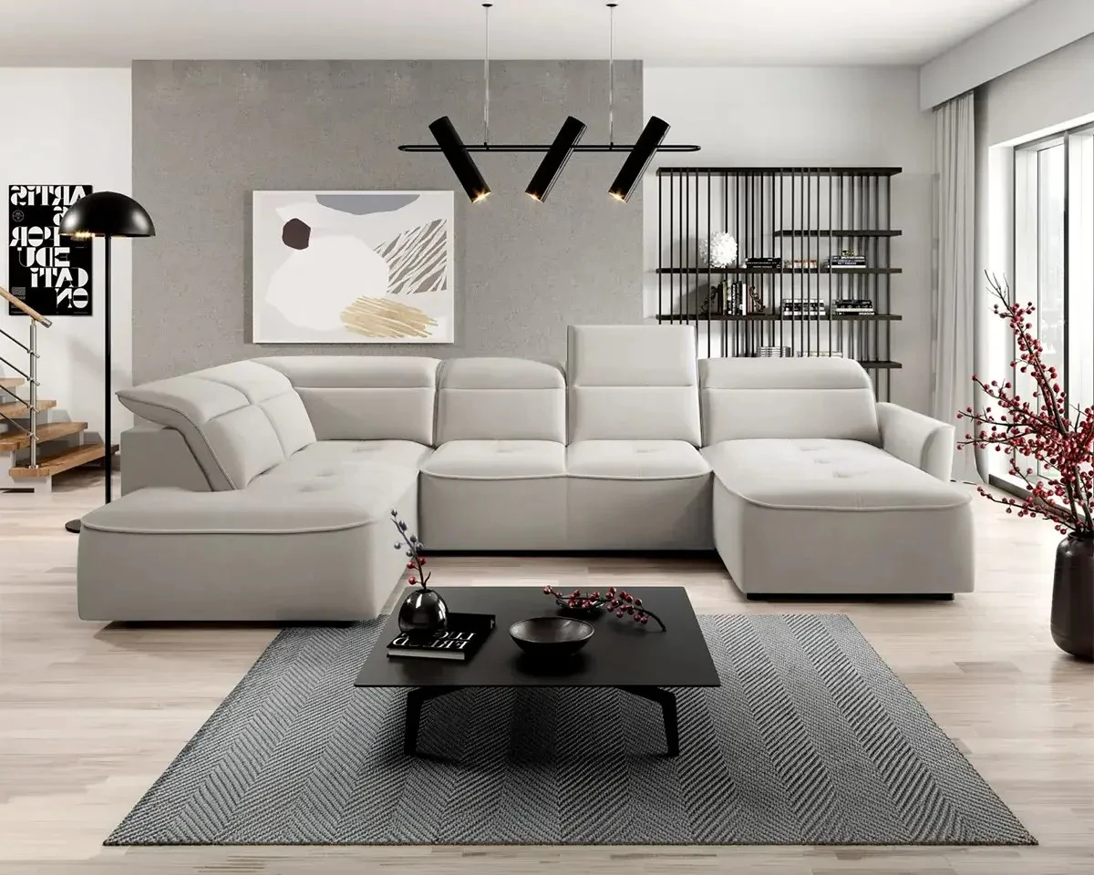 Souprava je vybavena elektrickým výsuvem sedáku až o 60 cm, což umožňuje výrazně zvětšit hloubku sedu nebo vytvořit plochu pro odpočinek či přespání. 6 polohovatelných záhlavníků zase nabízí možnost individuálního nastavení pro maximální relaxaci. Praktickým prvkem je také úložný prostor, kam snadno uložíte deky či jiné doplňky.