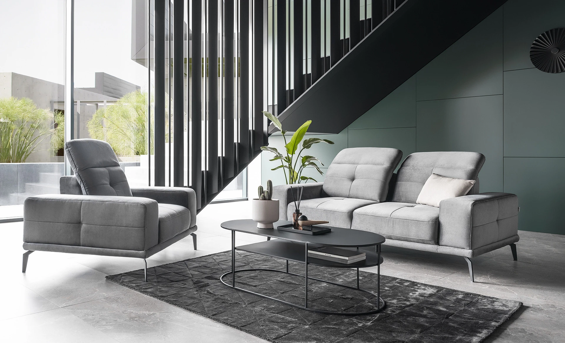 Souprava TORRENSE 2+1 je tvořena pohodlnou dvoumístnou pohovkou a komfortním křeslem, které dohromady tvoří vyvážený celek. Konstrukce z masivního dřeva a dřevotřísky zajišťuje pevnost a stabilitu, zatímco sedáky s HR pěnou a pružinami faliste poskytují optimální oporu a dlouhodobý komfort při sezení. Výrazným benefitem jsou relaxační funkce, jako posuvné opěrky zad a polohovatelné záhlavníky, které umožní upravit si posed přesně podle vašich potřeb.