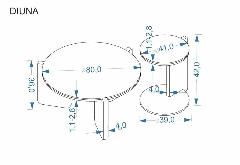 Set konferenčních stolků DIUNA je navržen s důrazem na flexibilitu a estetiku. Kombinace dvou různých velikostí umožňuje jejich variabilní uspořádání (společně nebo samostatně), což přináší praktické řešení pro každodenní používání i změny v interiéru.