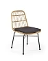 Tato stylová židle kombinuje boho a skandinávský design a přináší do prostoru lehkost, jednoduchost a přirozený vzhled. Sedák i opěrka jsou vypleteny ze syntetického ratanu, který je odolný vůči každodennímu používání. Pro větší komfort je sedák opatřen čalouněním z textilie, což zvyšuje pohodlí při sezení. Kovová konstrukce s práškovým nástřikem dodává židli stabilitu a dlouhou životnost. Židle není stohovatelná, ale její kompaktní rozměry a lehké provedení umožňují snadné přemísťování. Vhodná jak do interiéru, tak i pro chráněné venkovní prostory.