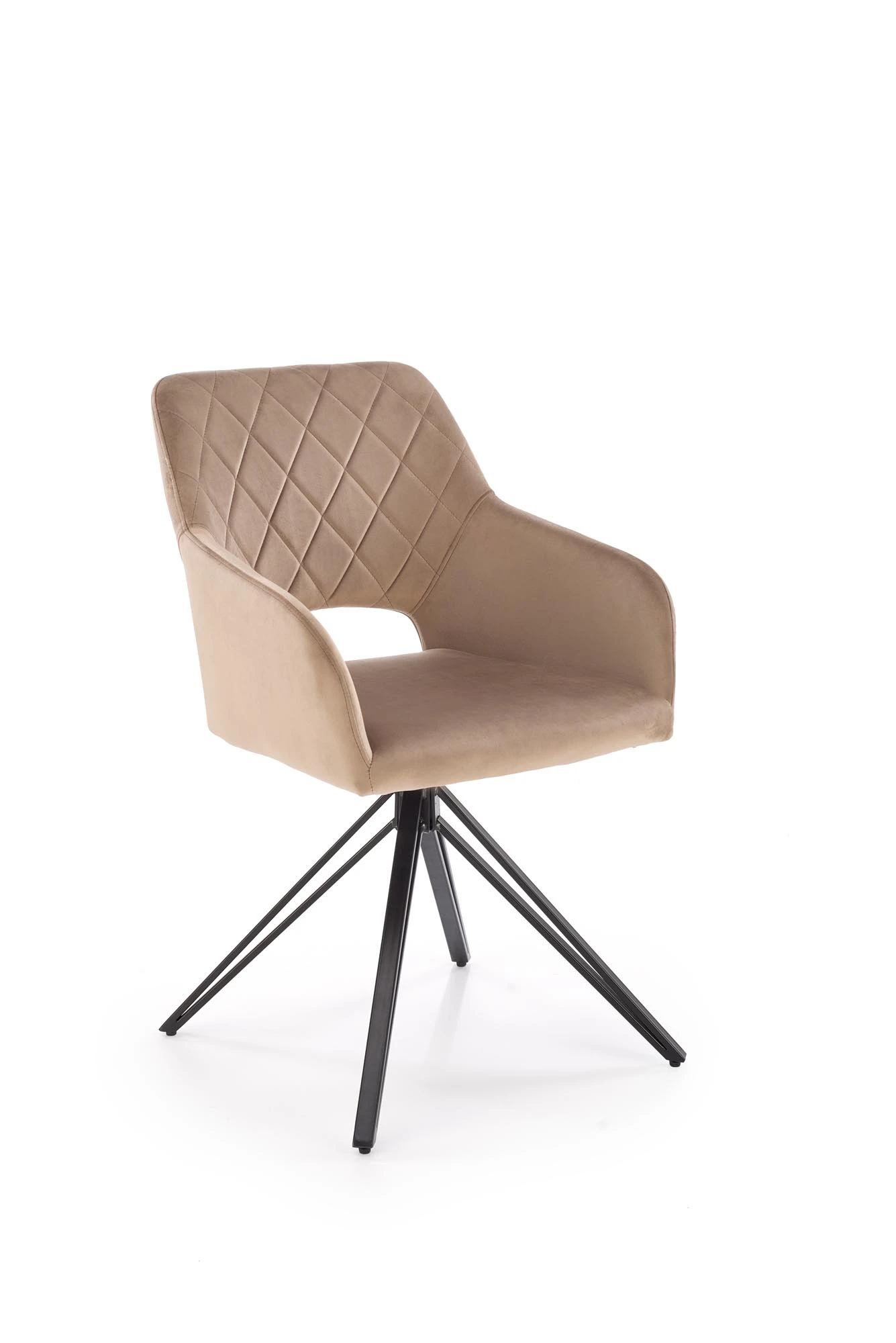 Židle K535 je vybavena 360° otočným sedákem, který poskytuje volnost pohybu bez nutnosti vstávání. Kovová konstrukce s černým práškovým nástřikem zaručuje pevnost a dlouhou životnost, zatímco měkké čalounění ze sametové tkaniny BLUVEL nabízí příjemný dotek a moderní vzhled. Čalounění je dostupné v elegantních barvách (šedá, béžová, tmavě zelená), které snadno sladíte s interiérem.